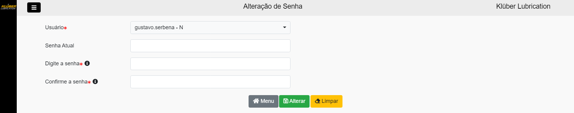 - Senha atual: Informe sua senha antiga;