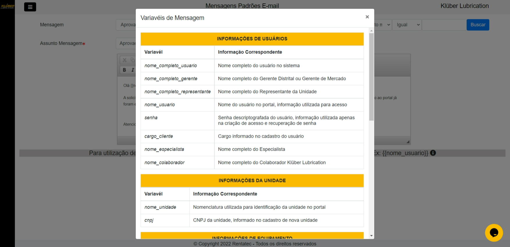 O programa de Mensagens Padrões de E-mail, tem como objetivo formatar os e-mails que serão disparados em fluxos dentro do Portal de Engenharia de Aplicação 4.0 da Klüber Lubrication.