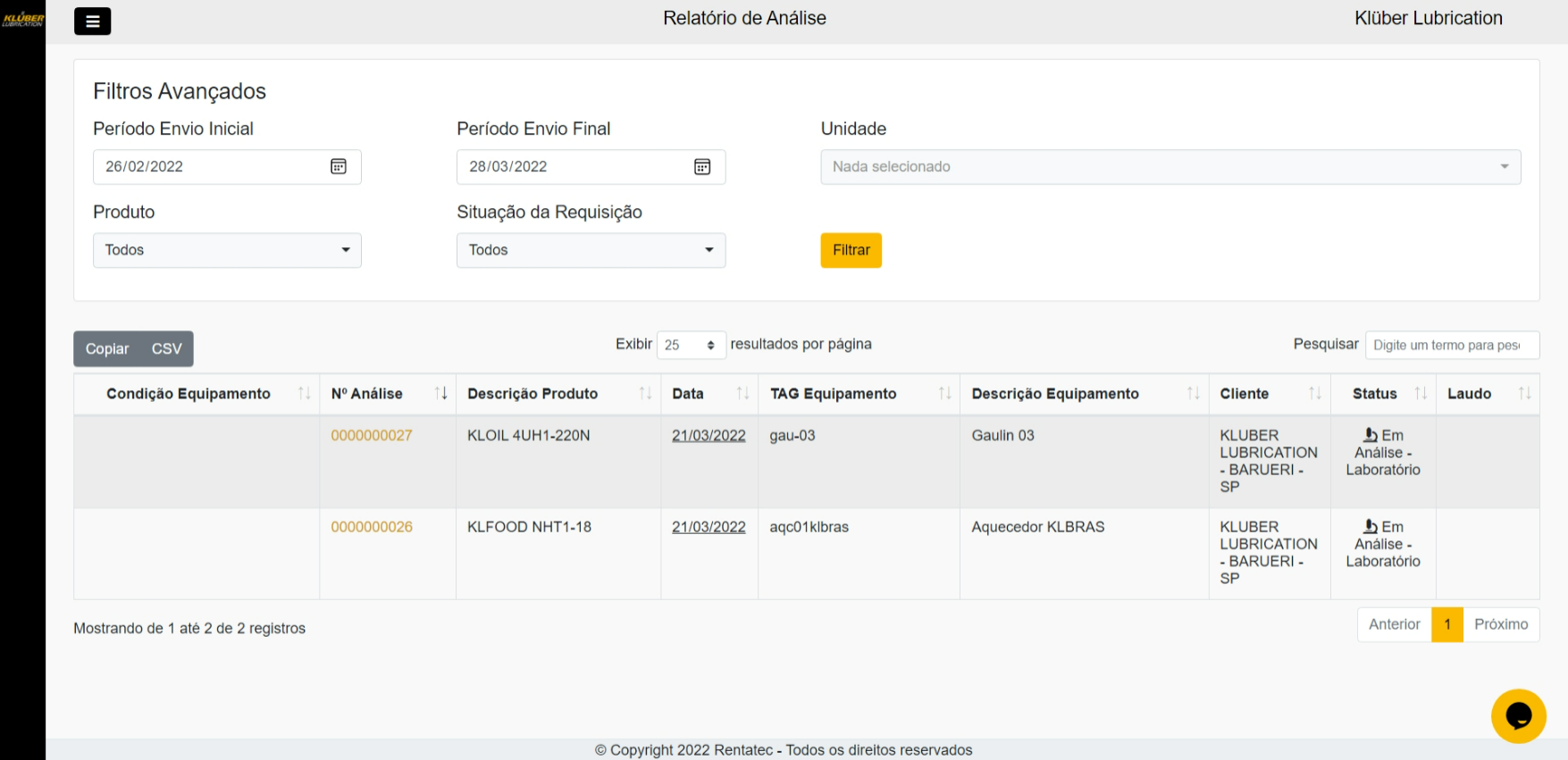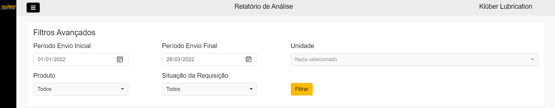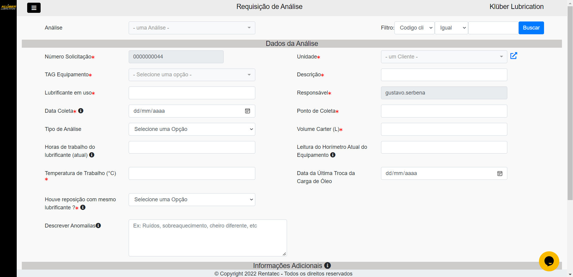 O programa de Requisiçao de Análise, tem como objetivo requisitar para a Klüber Lubrication uma análise para o equipamento desejado.