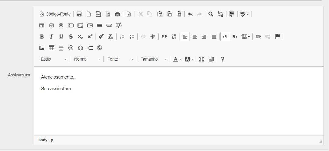 O usuário poderá cadastrar sua assinatura no sistema assim como já é feito em programa como Outlook.