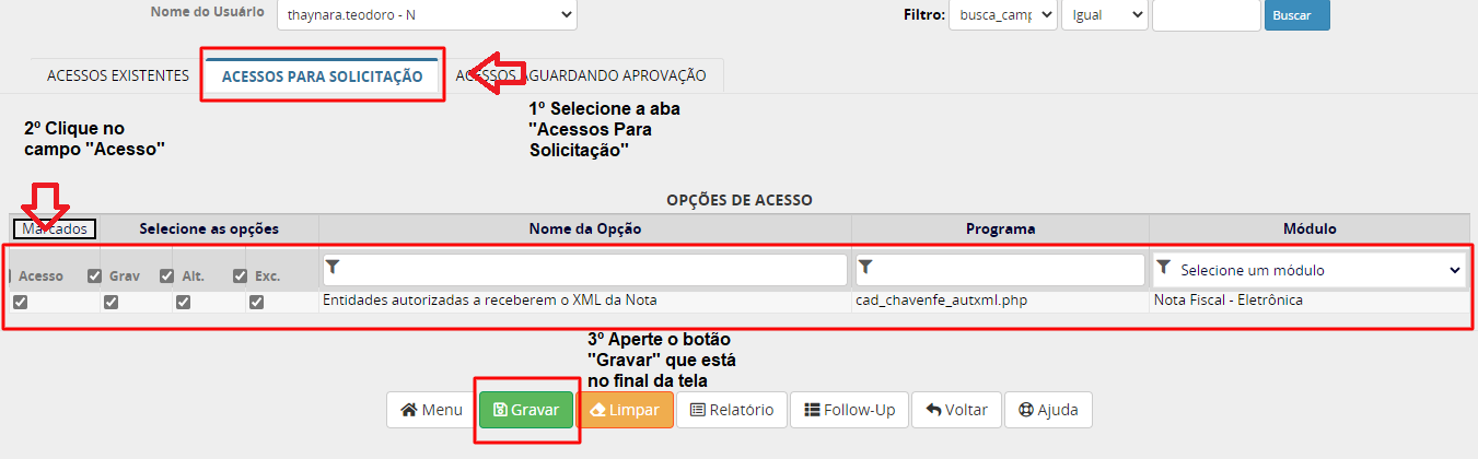 ACESSOS EXISTENTES: São acessos já liberados para o usuário
