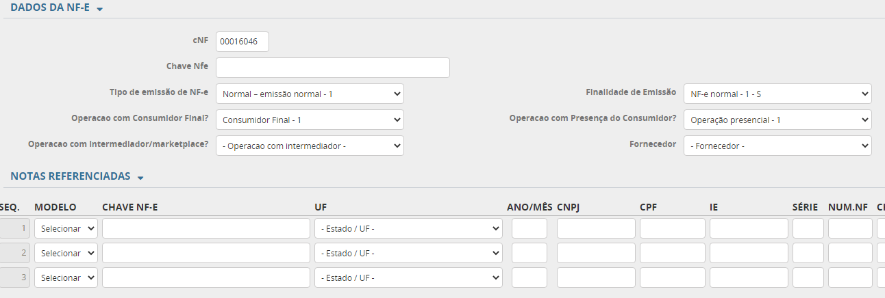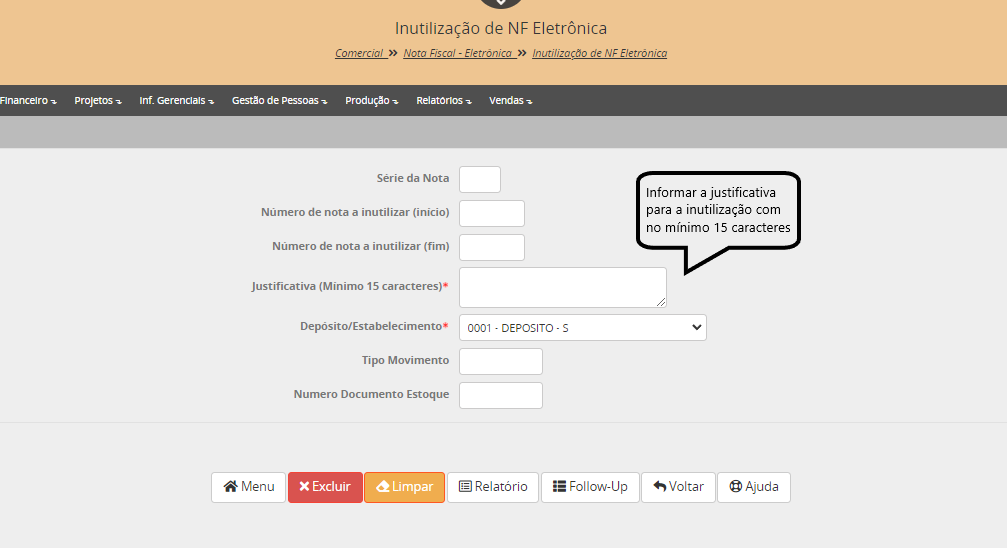 Quantidade final: Informar a quantidade final. Com até 8 caracteres.