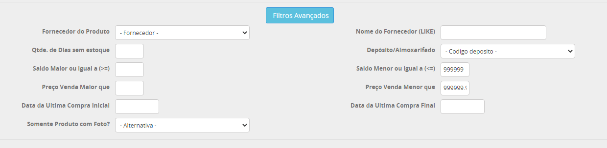 Nome do Fornecedor (LIKE): Iinforma o nome do fornecedor do produto.