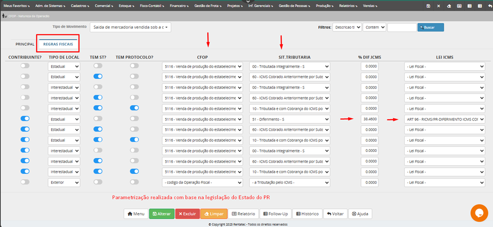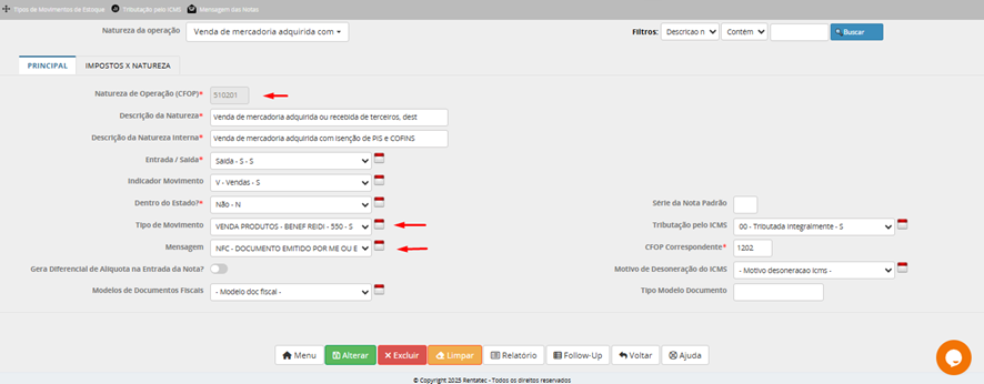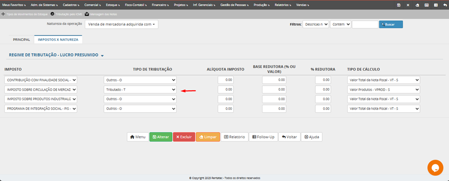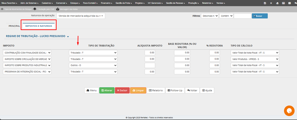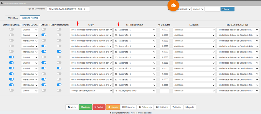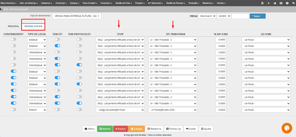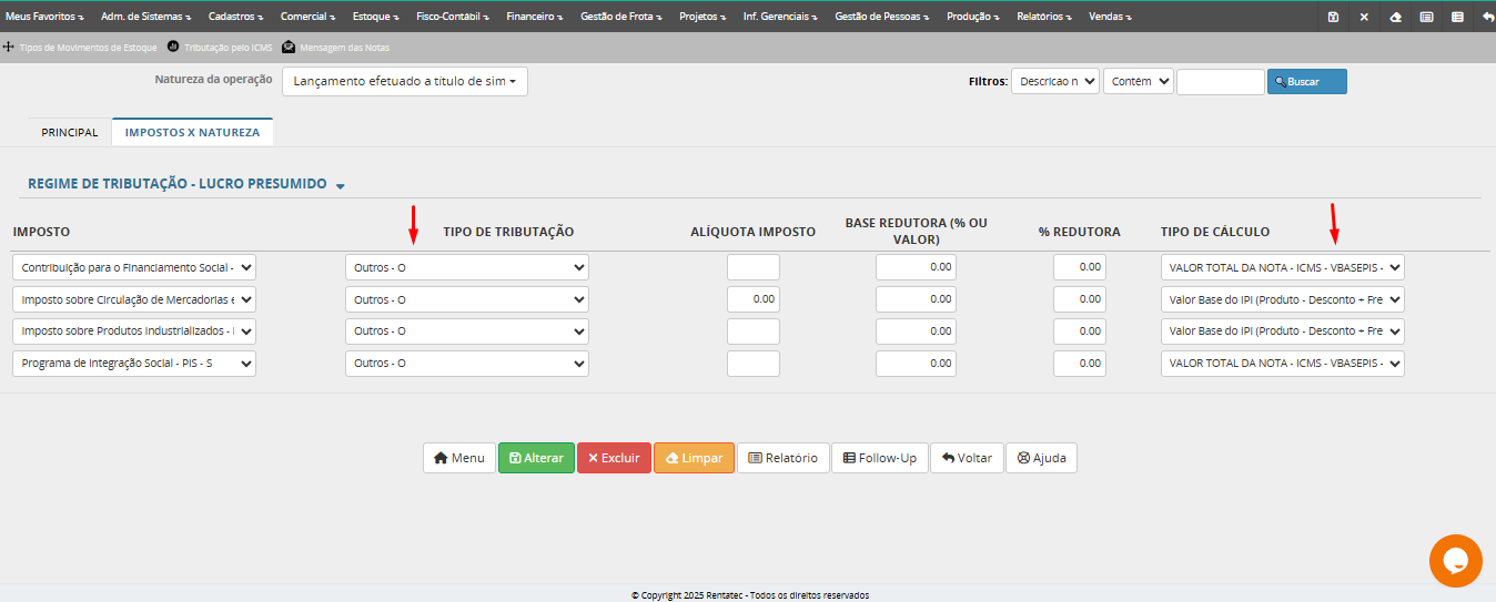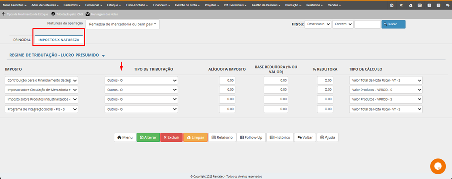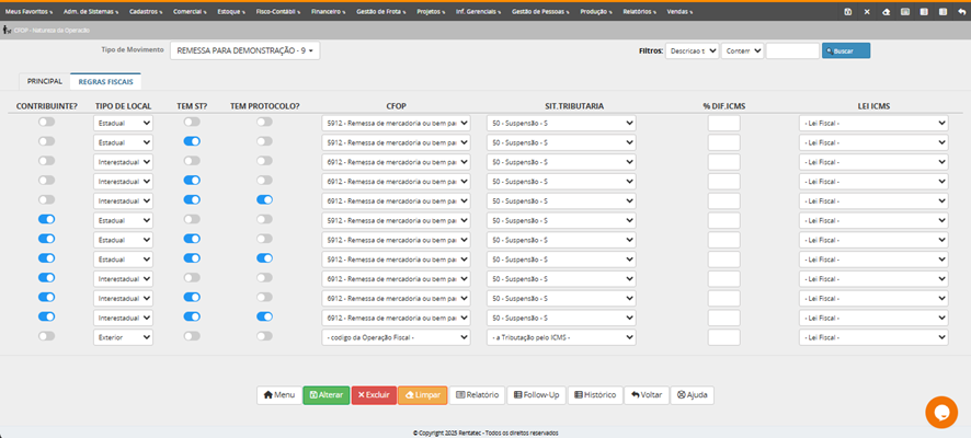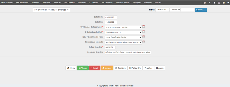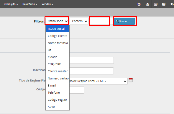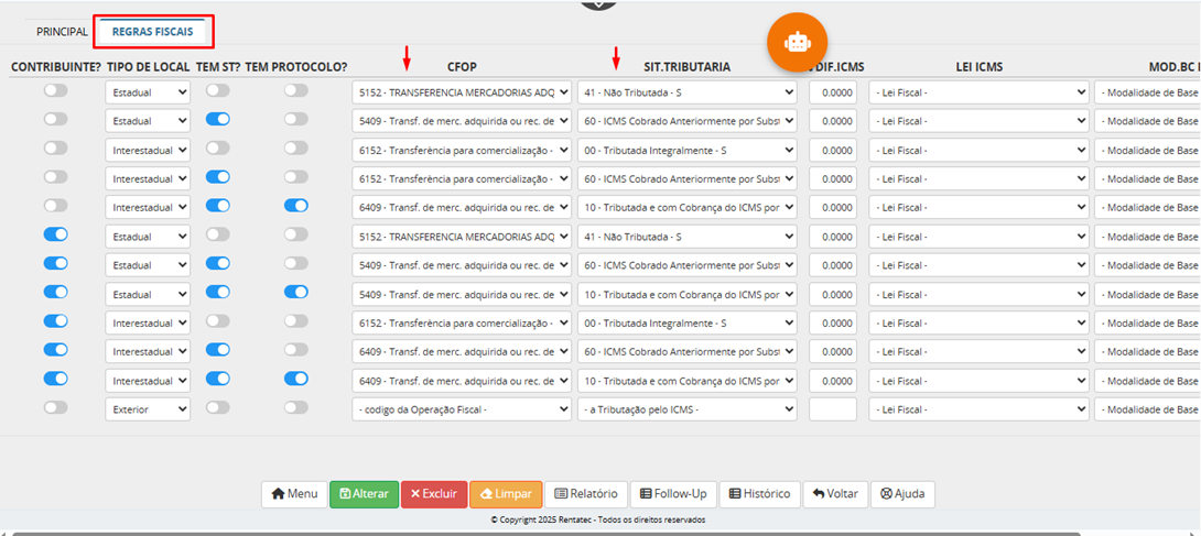 Tipo de Regime Fiscal - ICMS: Filtro por tipo de regime fiscal, Isento, Microempreendedor, indústria, etc.