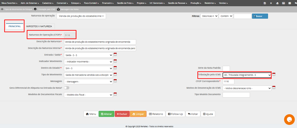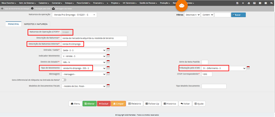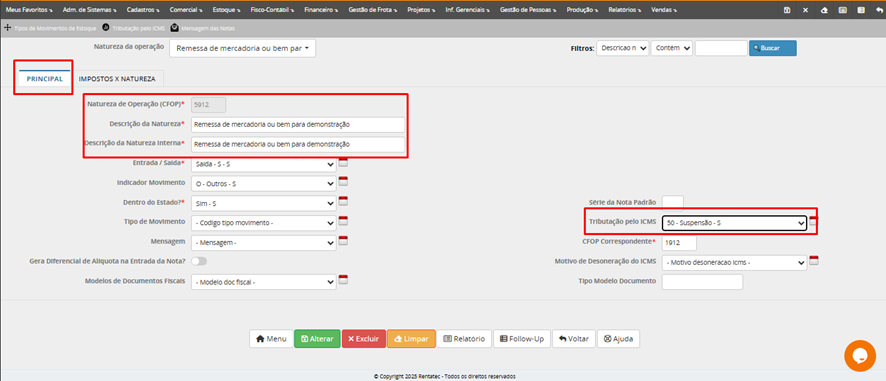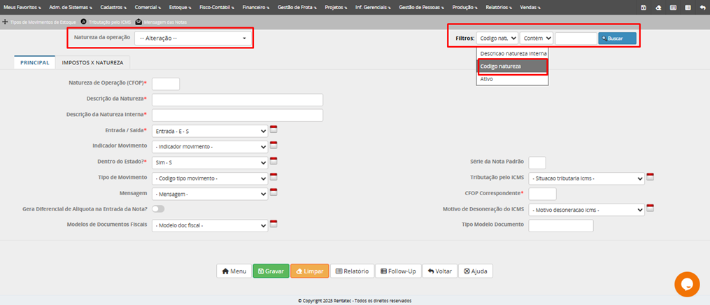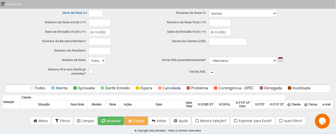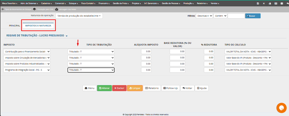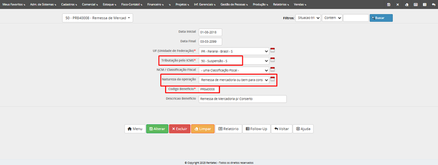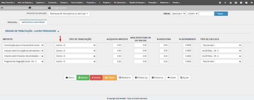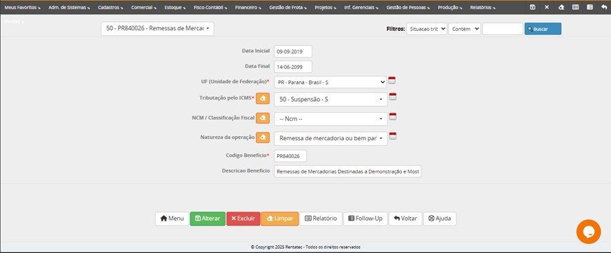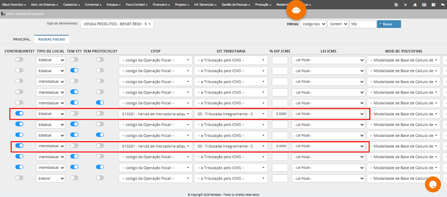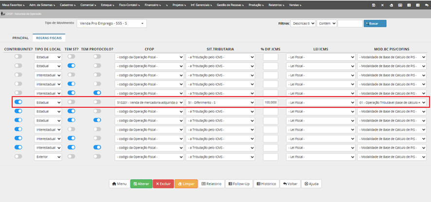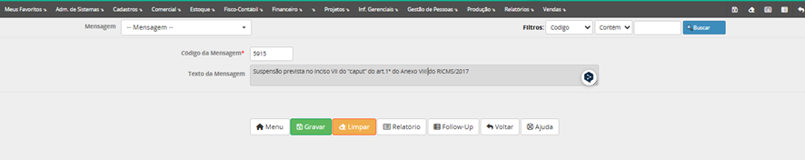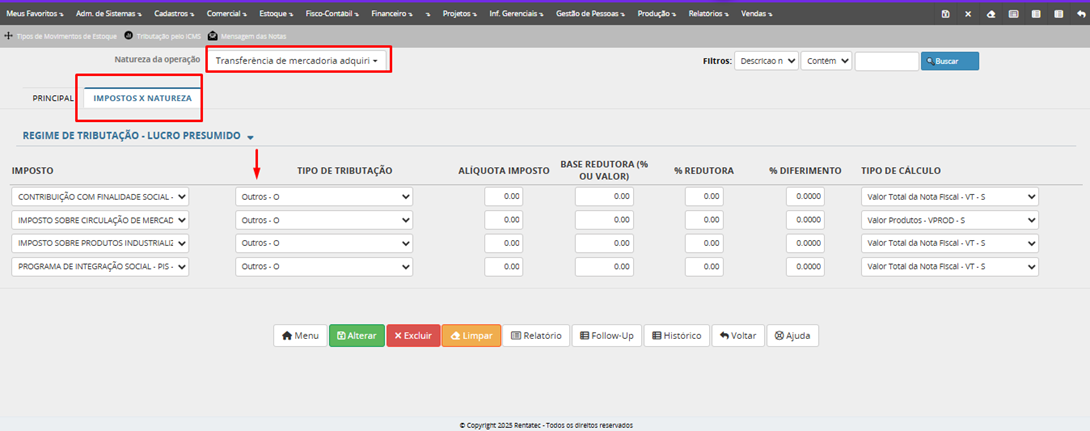Tipo de Regime Fiscal - ICMS: Filtro por tipo de regime fiscal, Isento, Microempreendedor, indústria, etc.