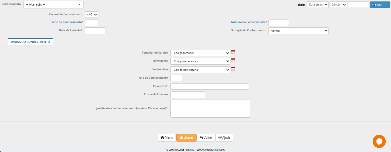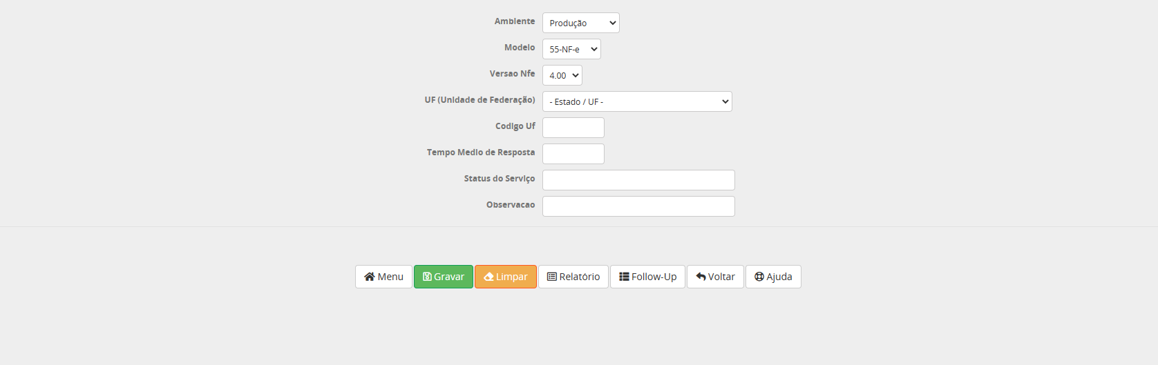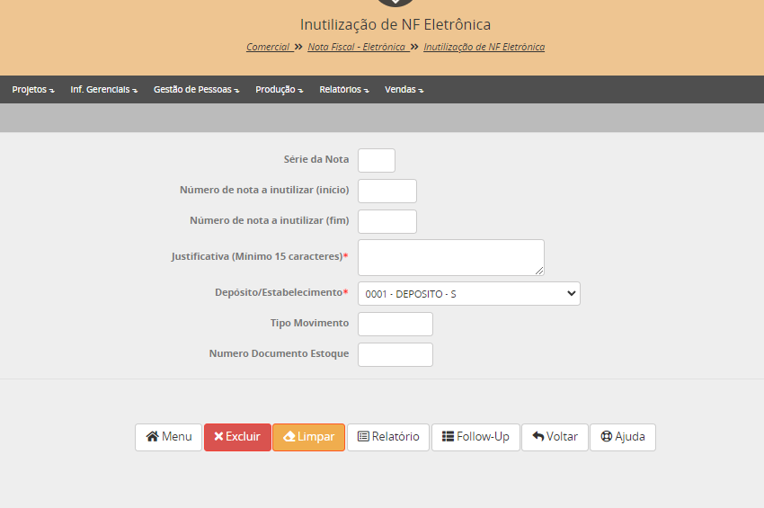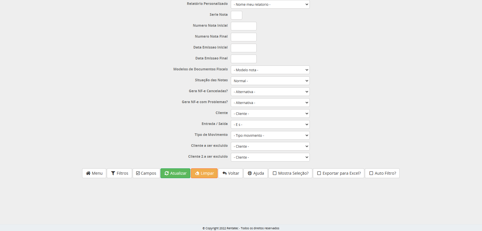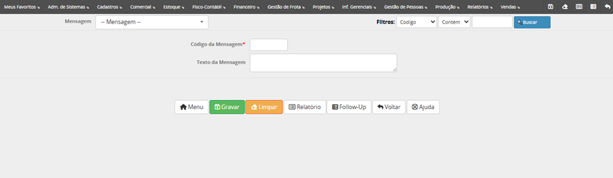 Ao acessar a opção do menu, o usuário irá carregar a seguinte tela: