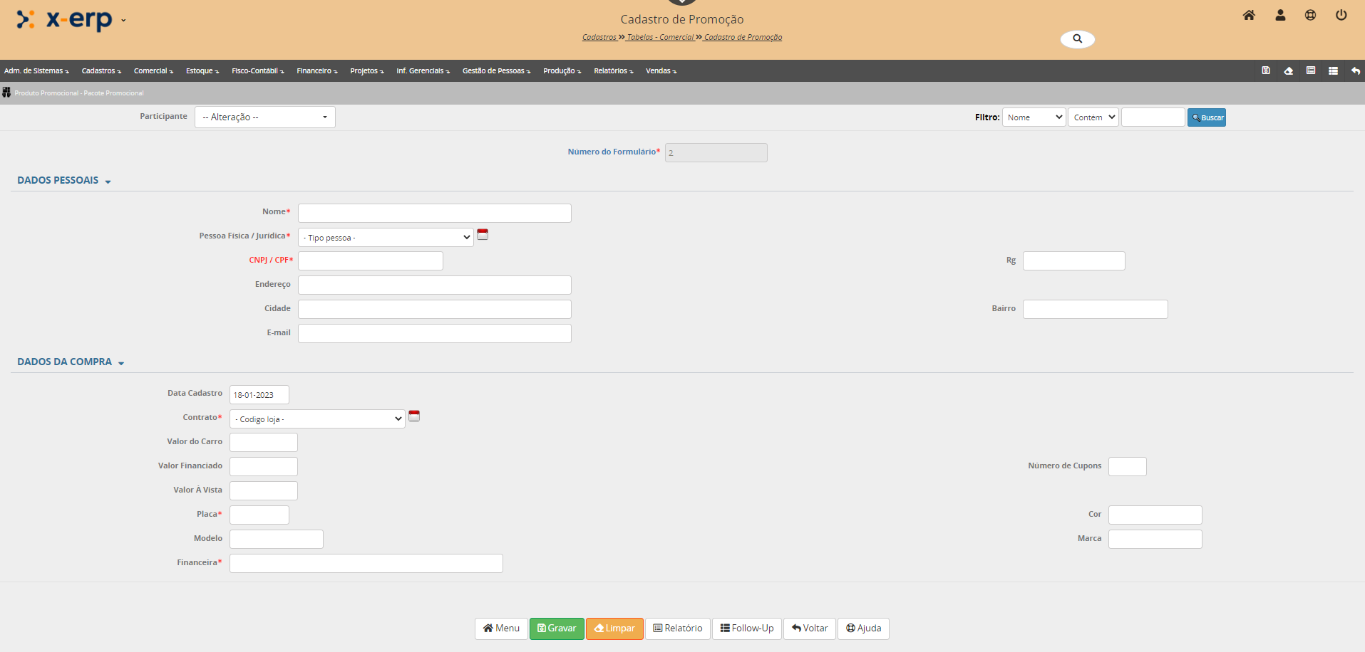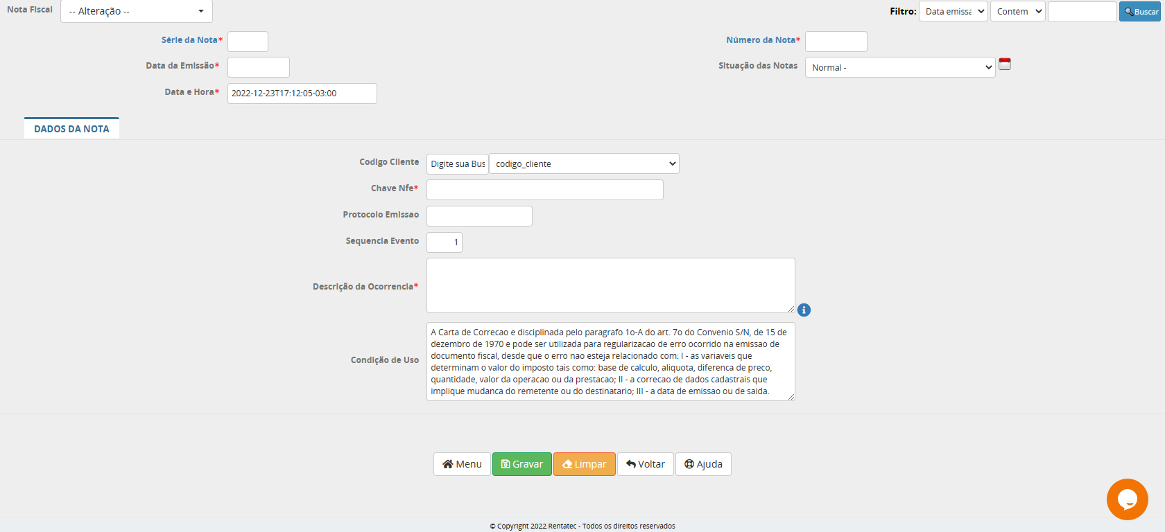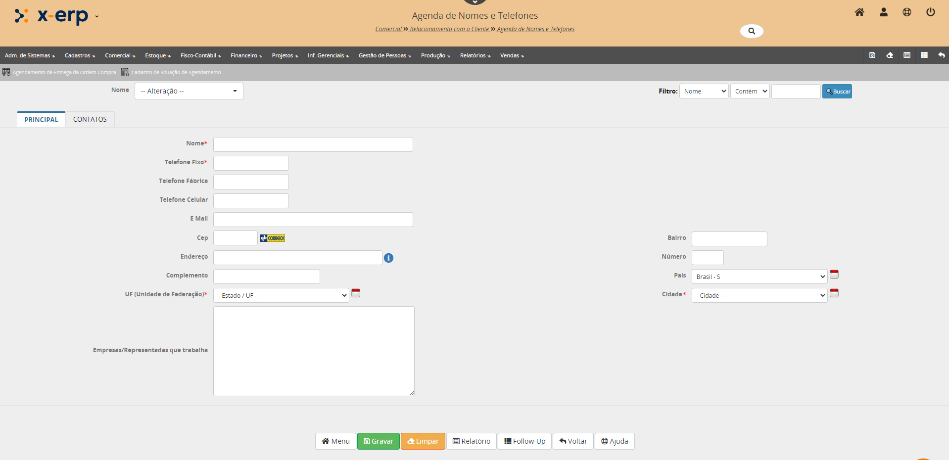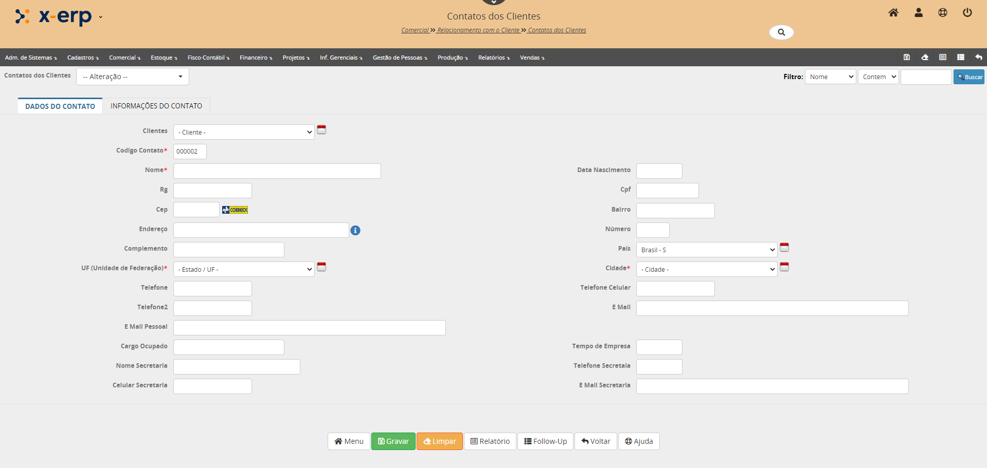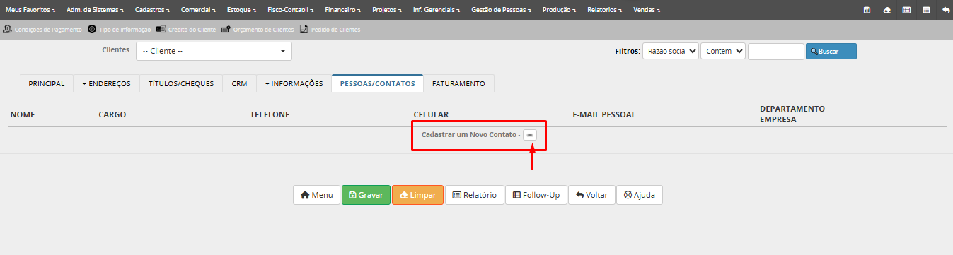 Após preencher todos os campos, basta selecionar a opção Gravar.