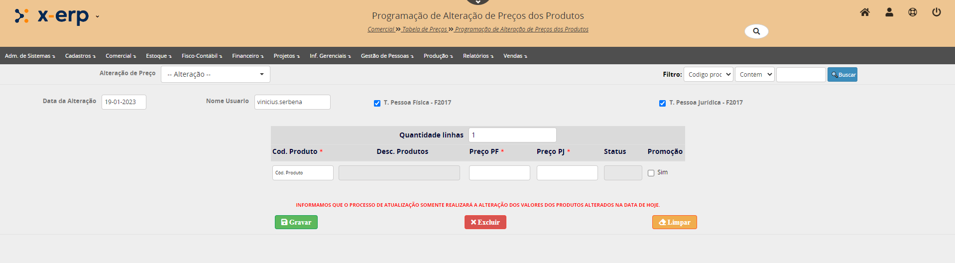 PROGRAMAÇÃO DE ALTERAÇÃO DE PREÇOS DOS PRODUTOS