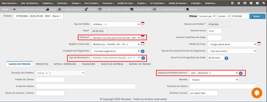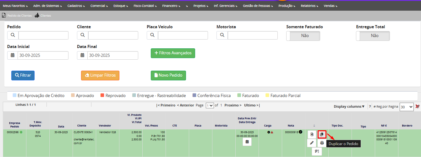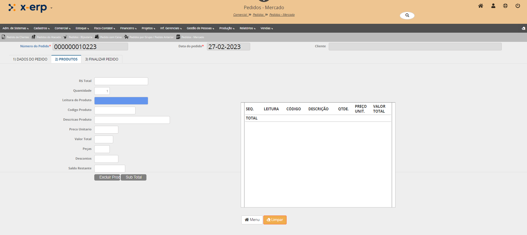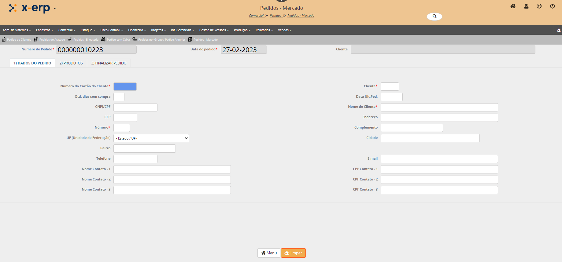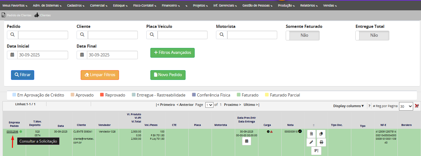 O cadastro de Comissão no Pedido é acessado pelo programa pedido de Cliente.