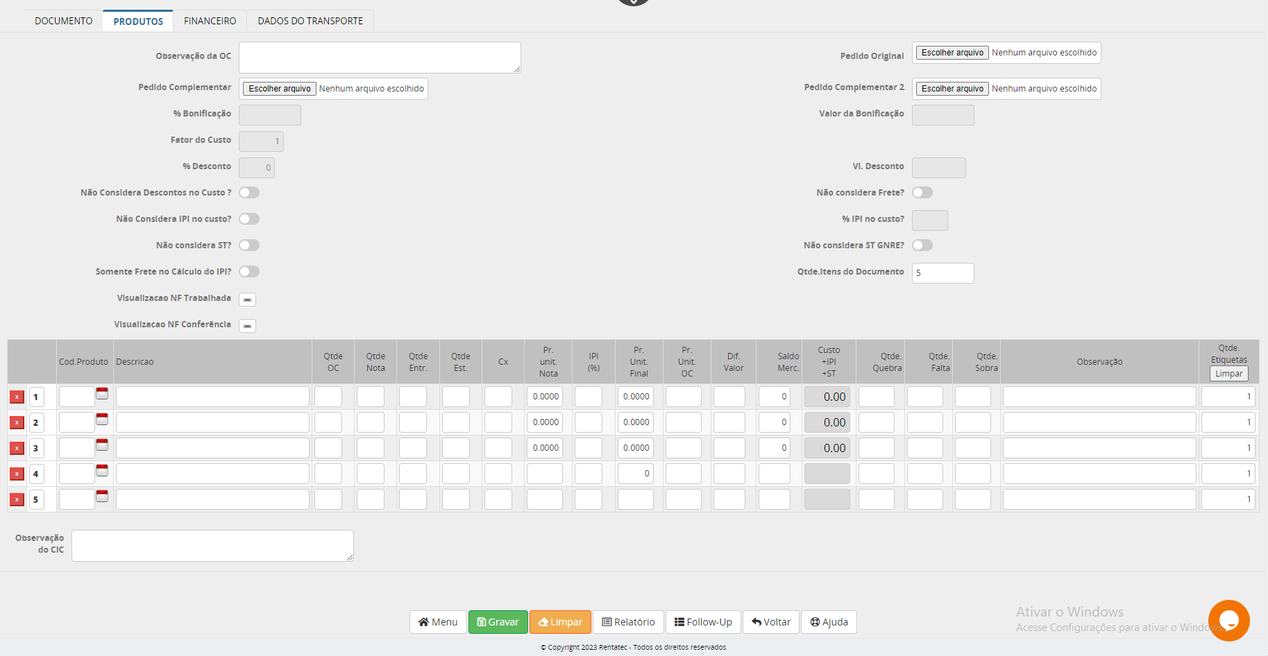 % Margem dos Produtos: Percentual de ajuste nos preços para os produtos.