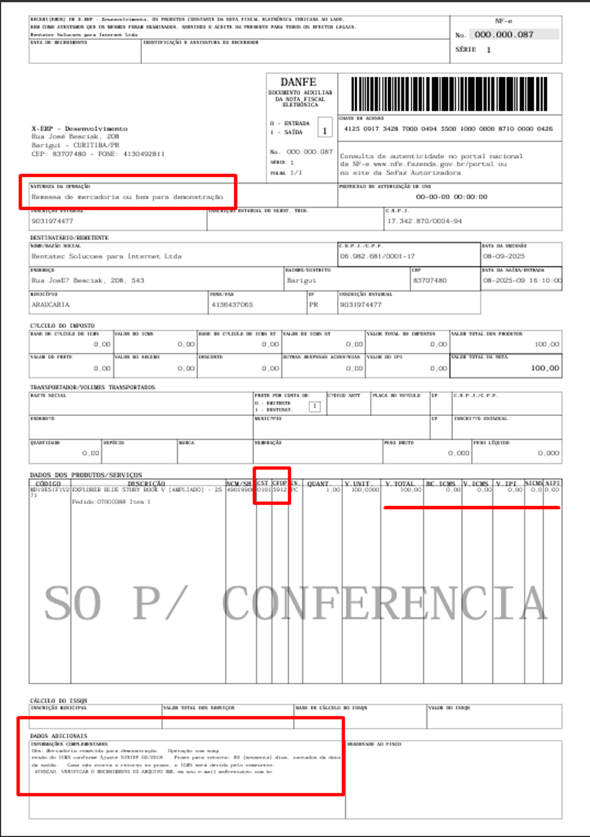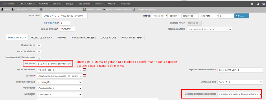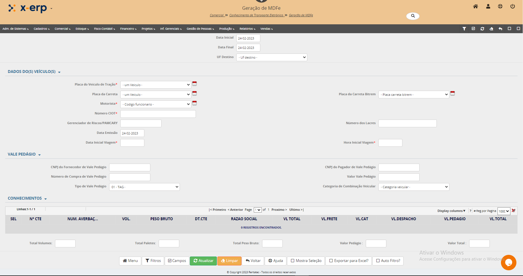 O módulo está alinhado com as exigências da legislação tributária federal. Contempla a geração da NF-e (Nota Fiscal Eletrônica de Produto), a geração do CT-e (Conhecimento de Transporte Eletrônico) e a geração da NF-EM (Nota Fiscal Eletrônica Municipal de Serviços) para algumas Prefeituras Municipais, permitindo adaptações para outros layout, quando necessário.