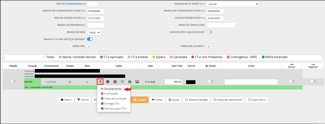 Qtde. de Itens Encontrados: Quantidade de itens encontrados após o filtro.