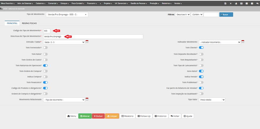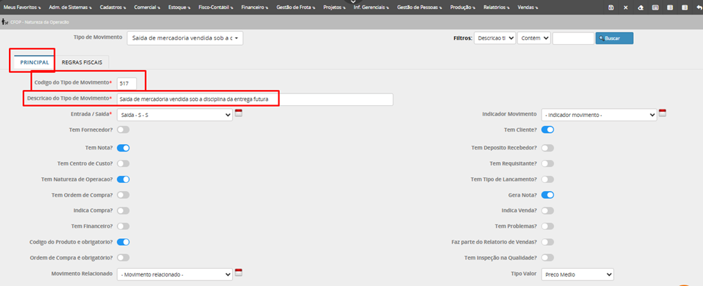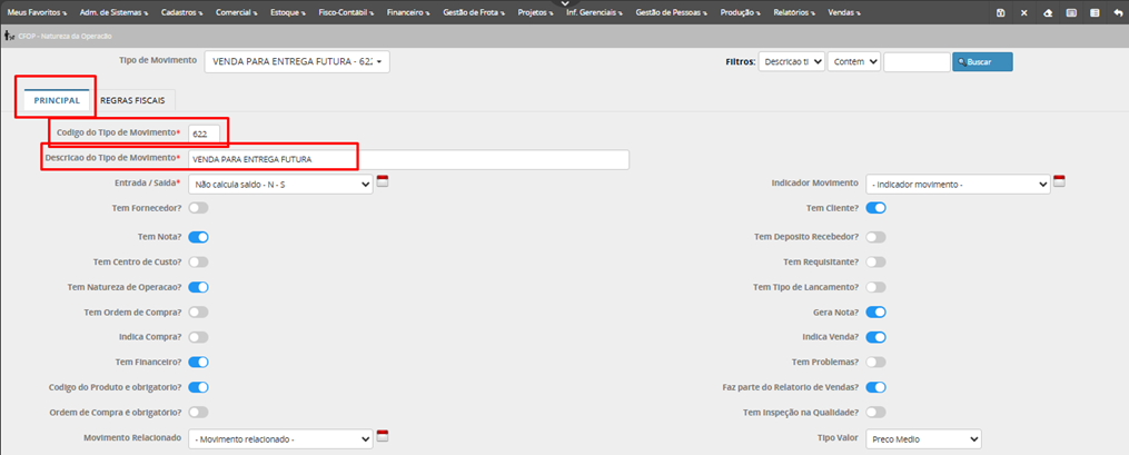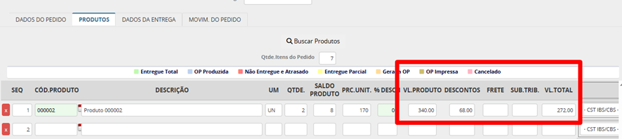 Abaixo podemos ver o registro de preço de venda em destaque.
