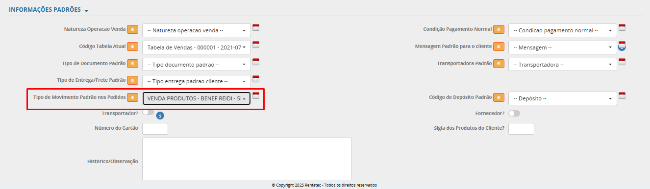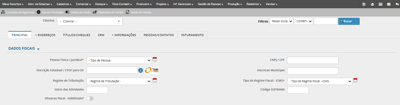 Como cada tabela pode ser aplicada a um cliente, a seleção da tabela de preço adequada deve ser selecionada no cadastro do cliente. |