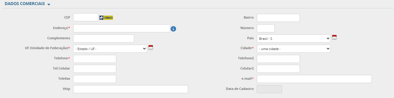 Abaixo podemos ver um exemplo de cadastro de comissão.