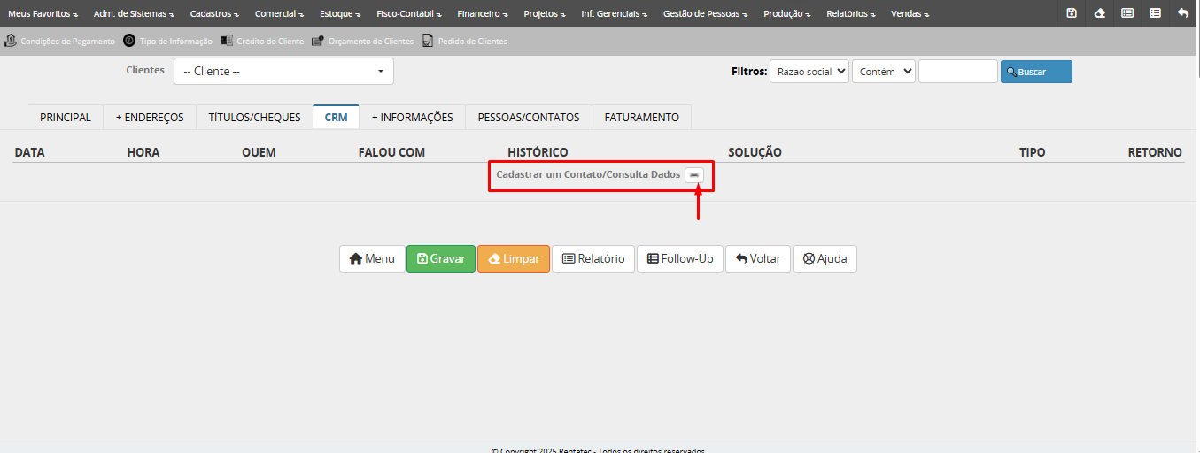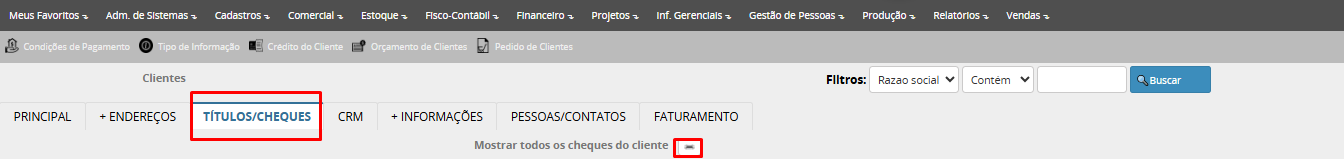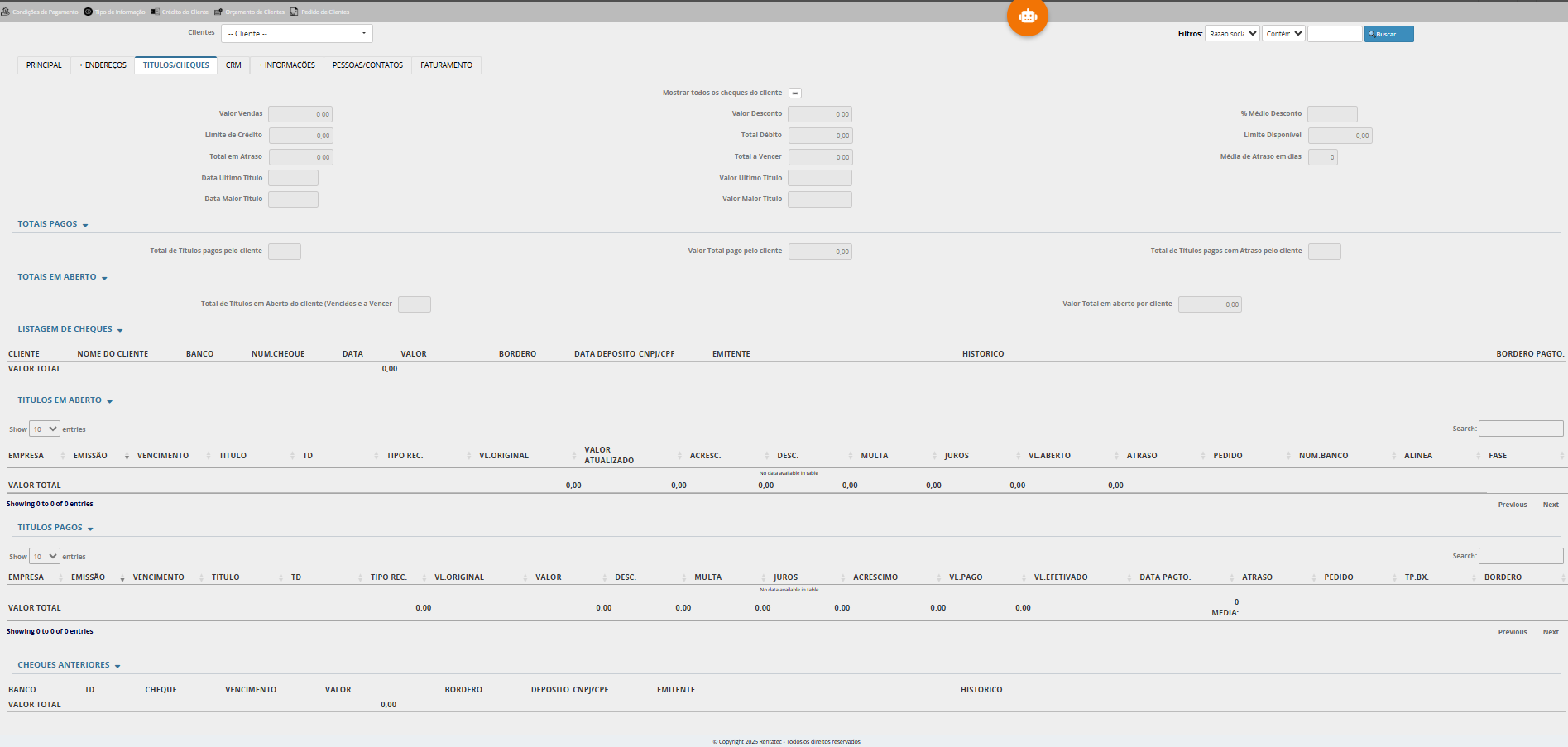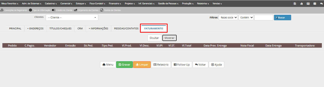 Clientes: Filtro por cliente individual. O sistema lista todos os clientes cadastradas