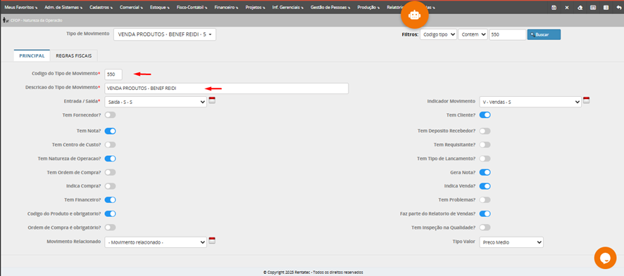 Quantidade inicial: Informar a quantidade Inicial. Com até 8 caracteres. Este campo é chave(Não pode ser alterado).