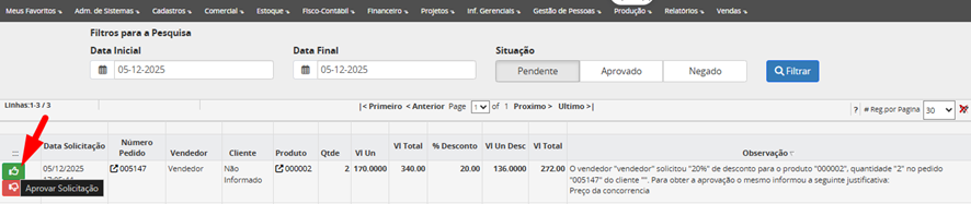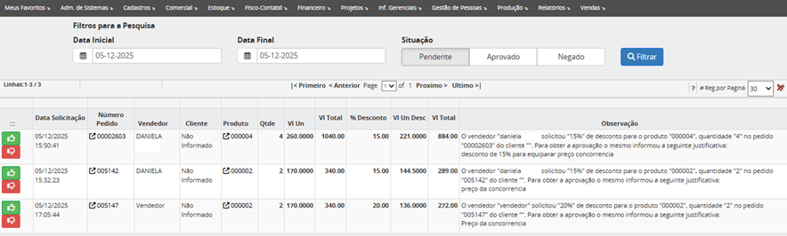 Abaixo o pedido agora com acréscimo de uma comissão de outro representante.