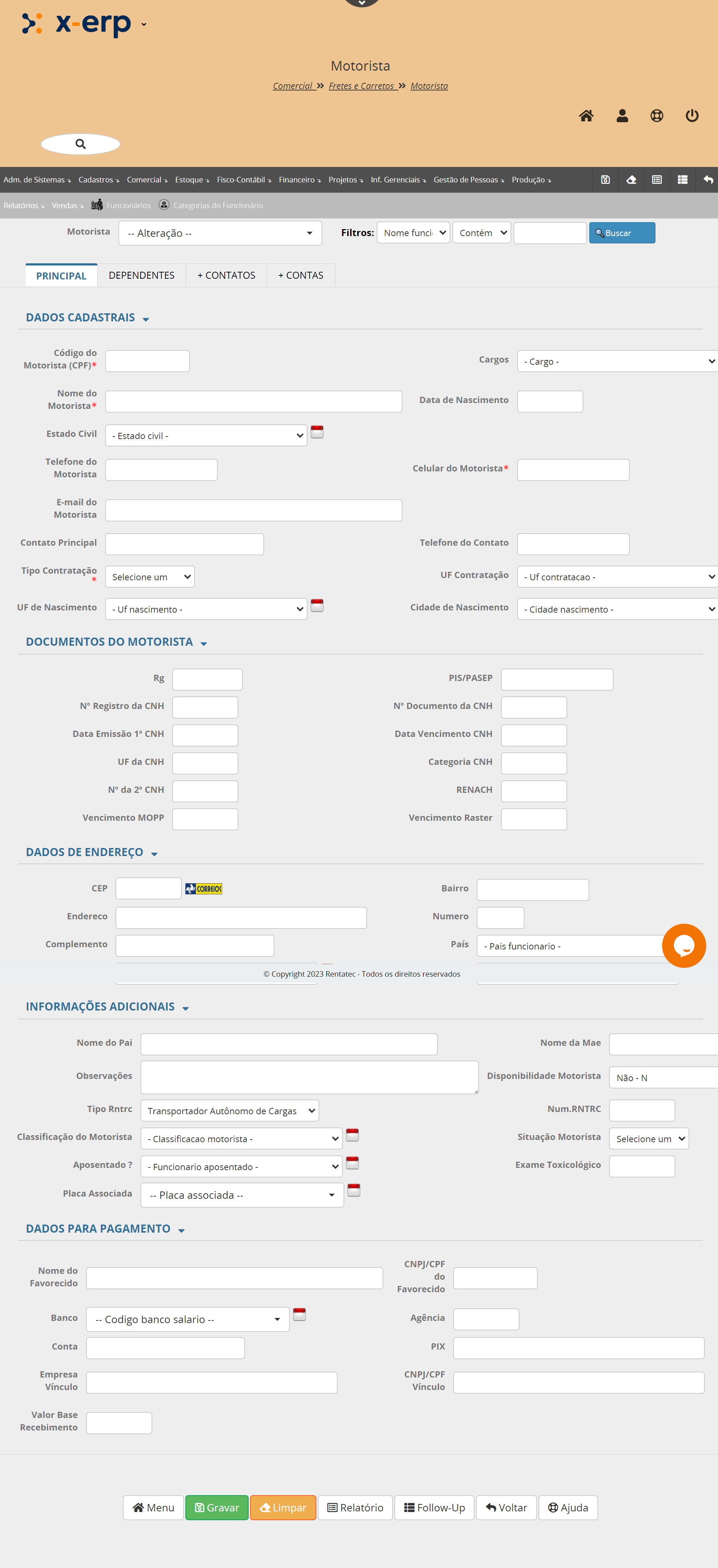Tipo do Colaborador: O tipo de colaborador esta vinculado no cadastro de comissões, não sendo necessário o preenchimento pelo usuário.