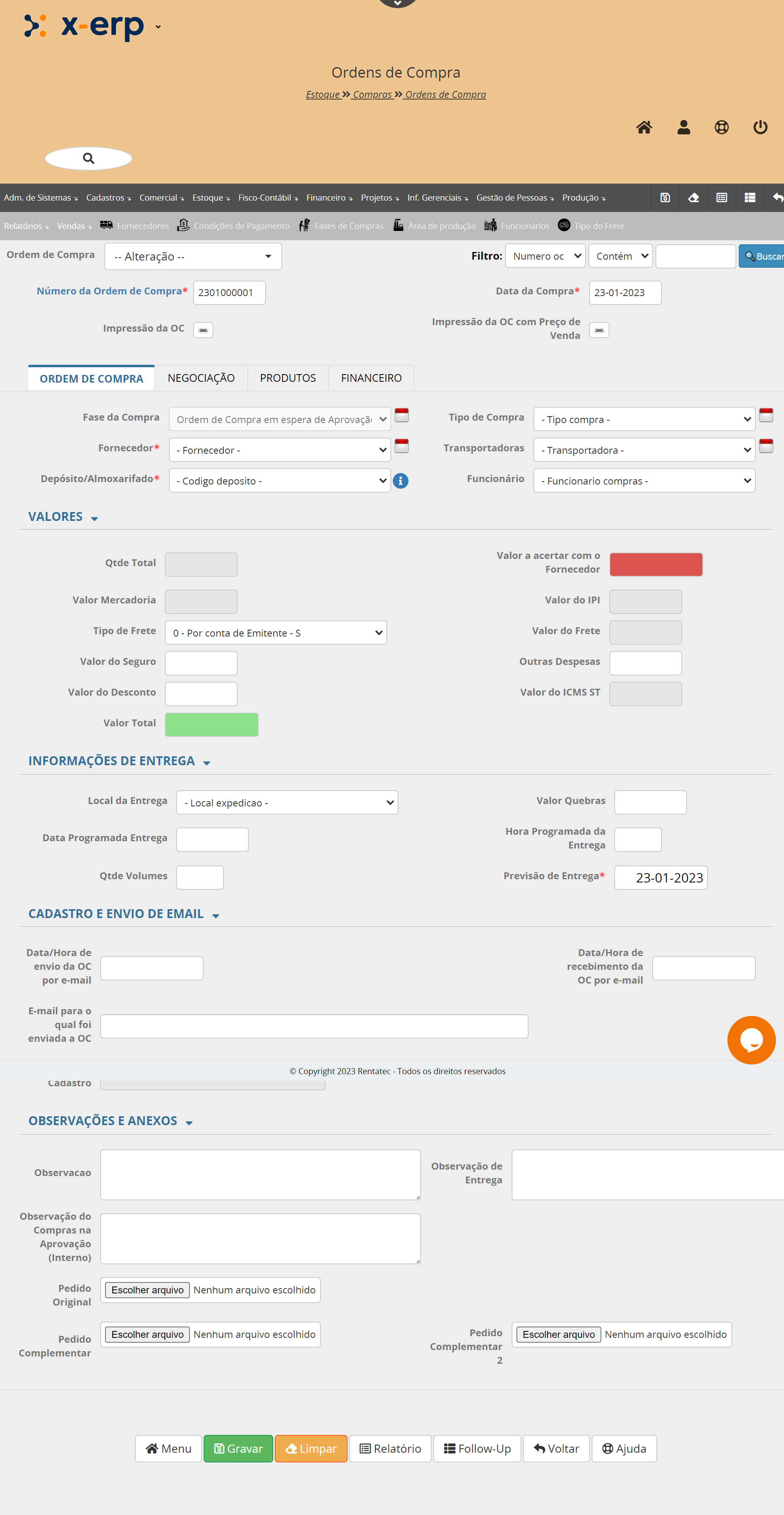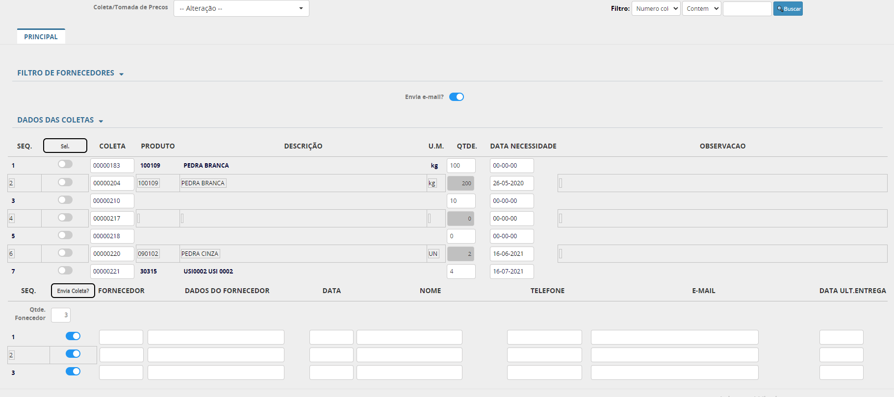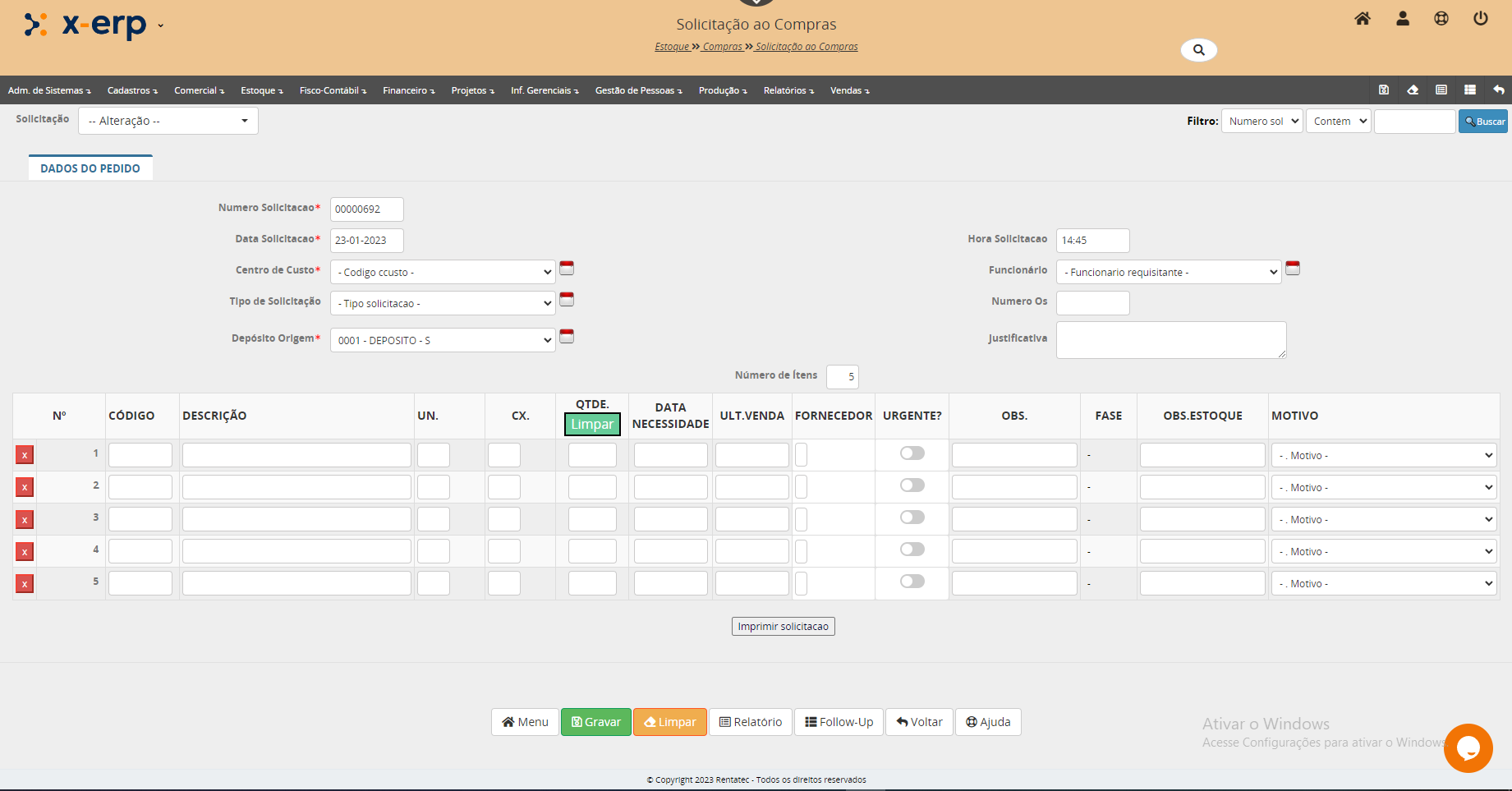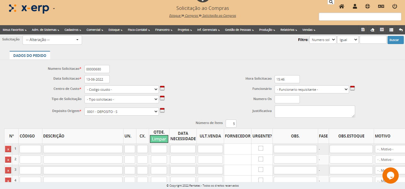 Número solicitação: Refere-se ao Número da solicitação. este número é sequencial e fornecido automaticamente pelo sistema, mas poderá ser alterado dependendo da necessidade do usuário.