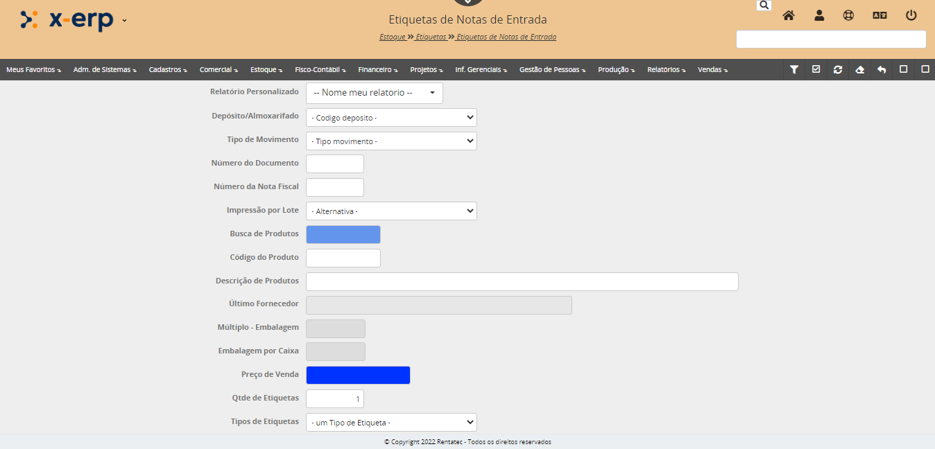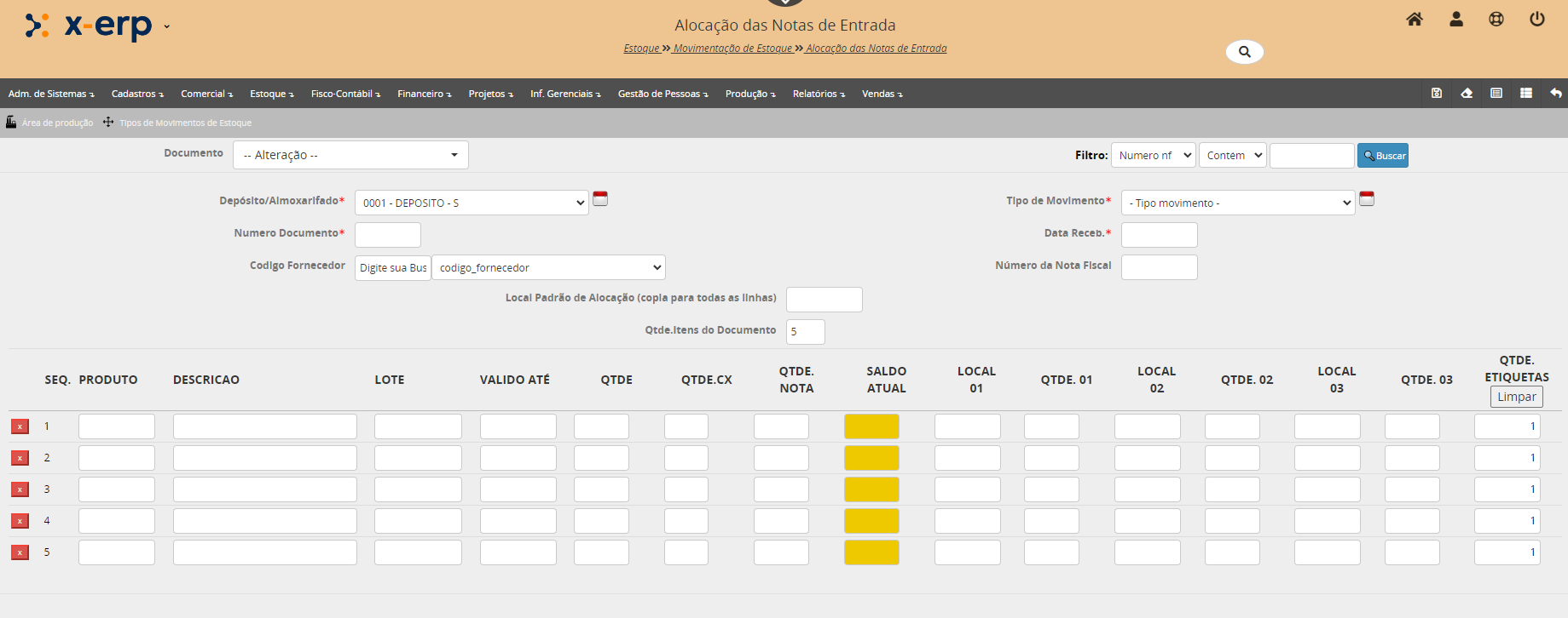 No menu principal, selecione: Estoque > Movimentação de Estoque > Transferência das Entradas