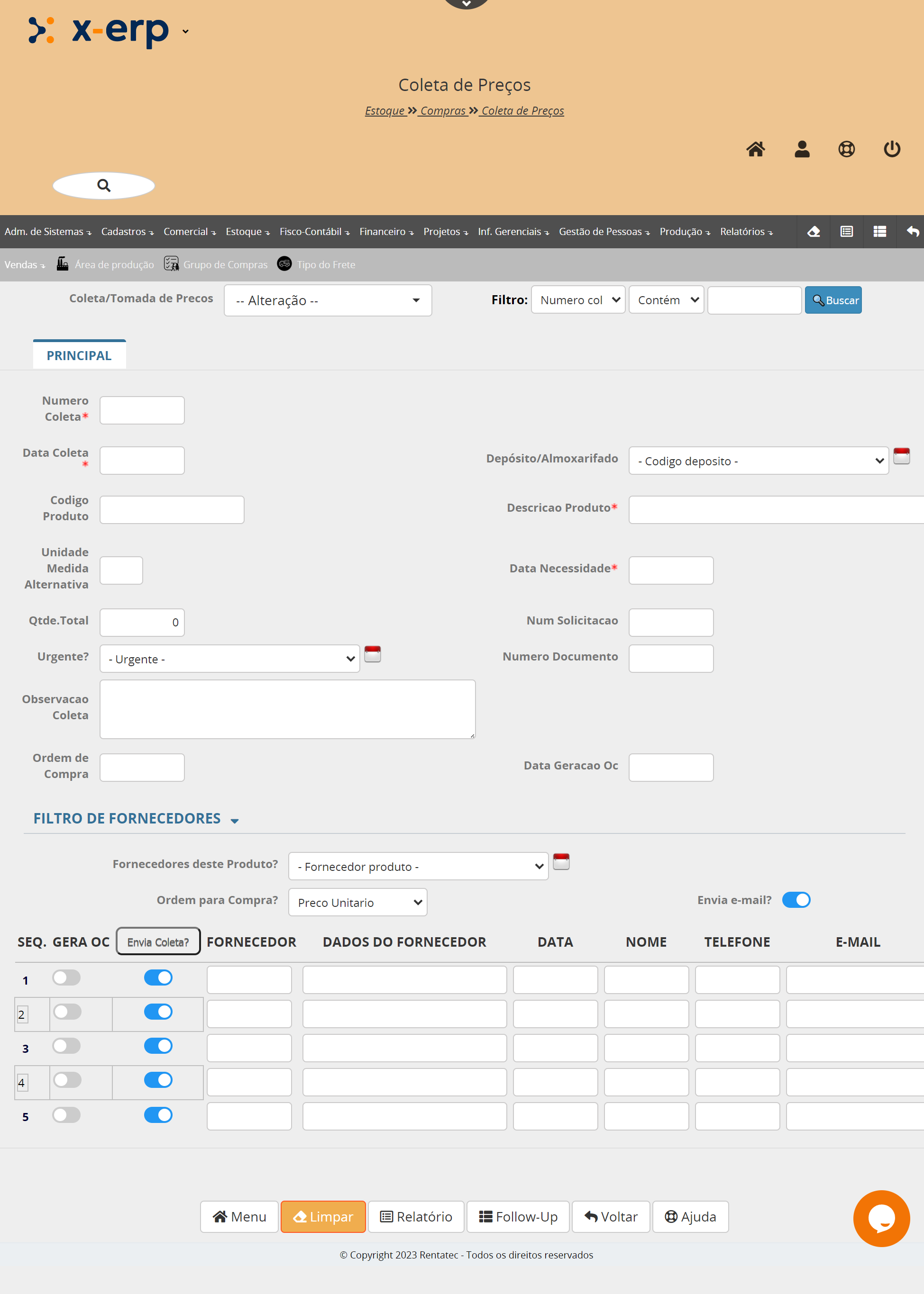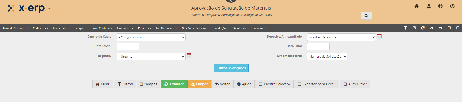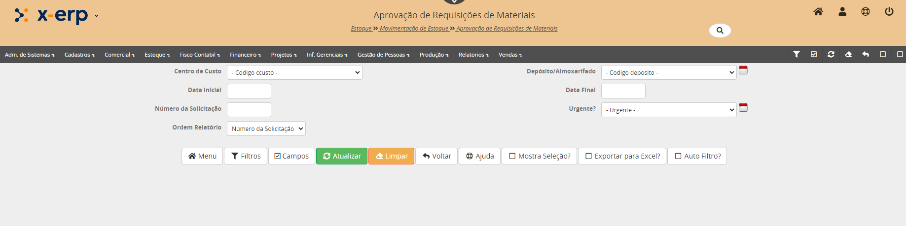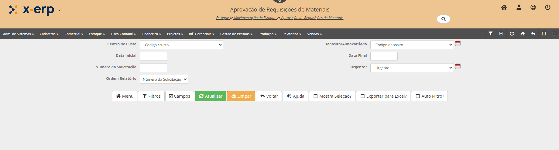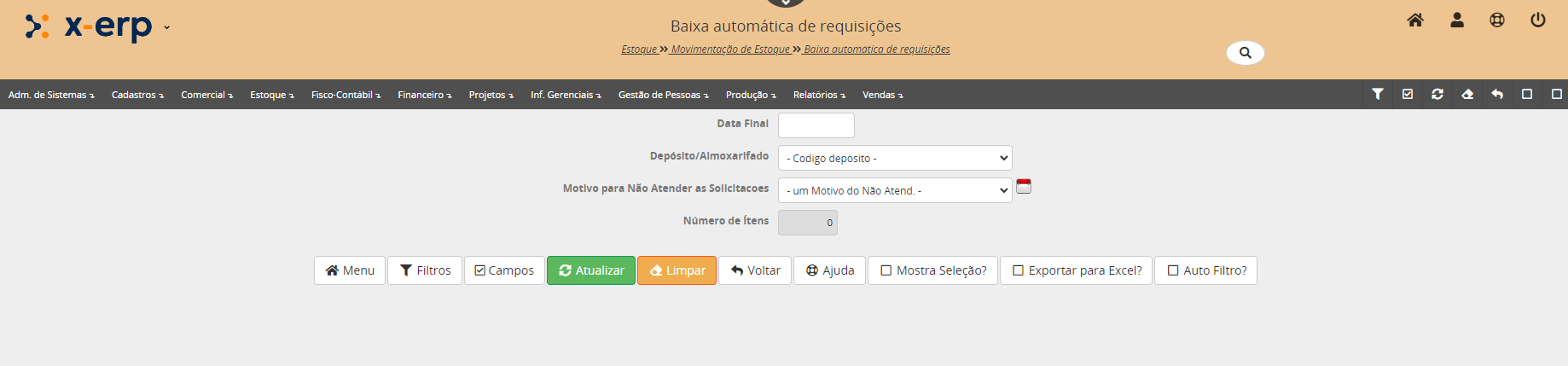 O programa Baixa Automática de Requisições tem por objetivo, baixar automaticamente as solicitacoes ate data limite , no sistema X-ERP.
