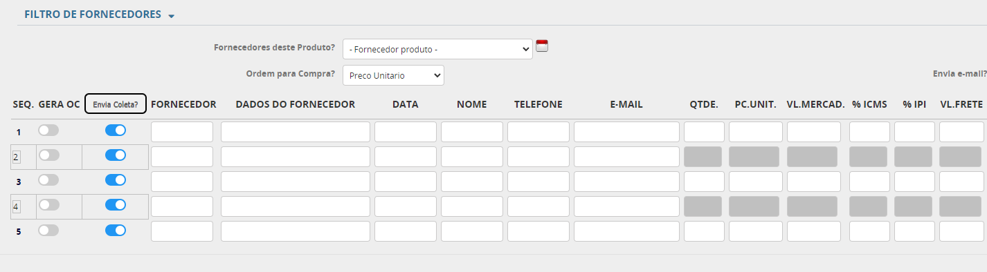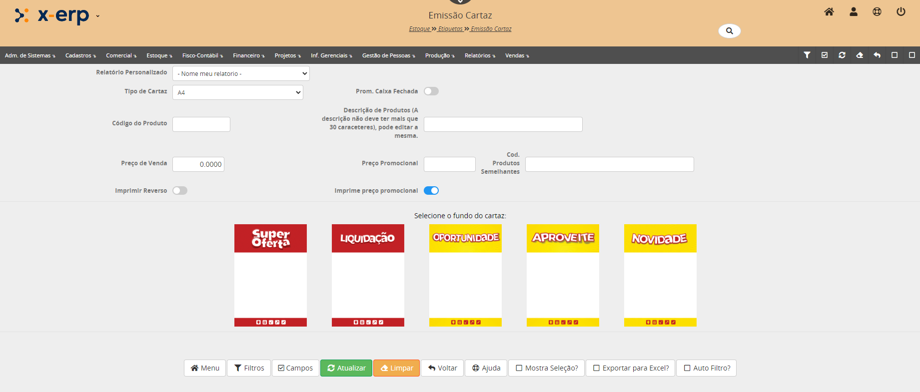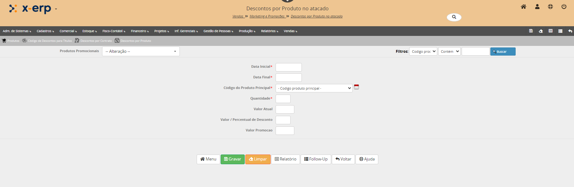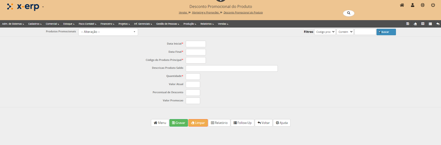Busca Produtos: Faz uma busca de produtos conforme filtros e campos selecionados.