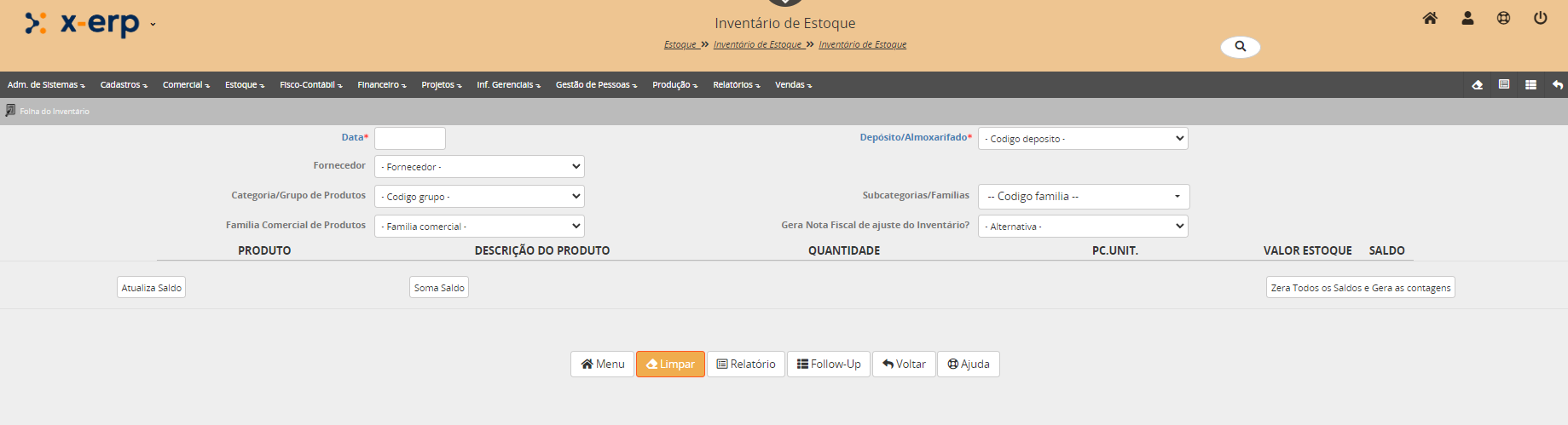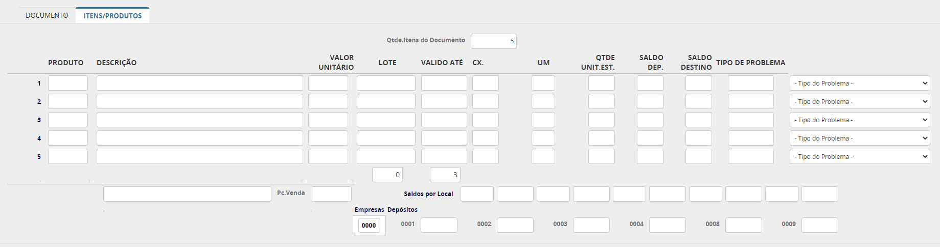 Os produtos listados automaticamente pelo sistema são os produtos com saldo e não movimentados durante 30 dias antes da abertura da solicitação. |