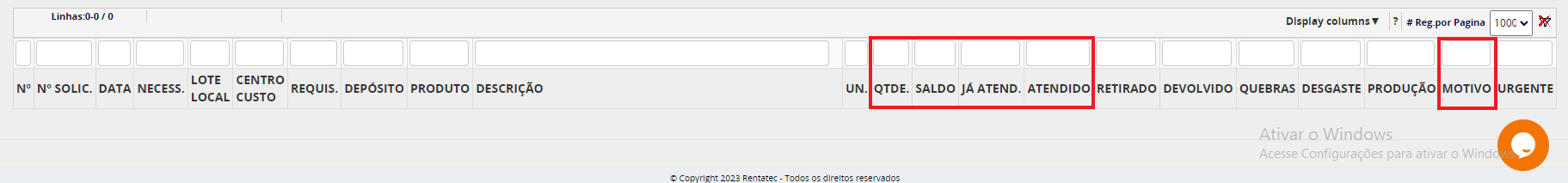 O usuário responsável pelo controle de materiais irá atender a solicitação conforme registro encontrado abaixo: