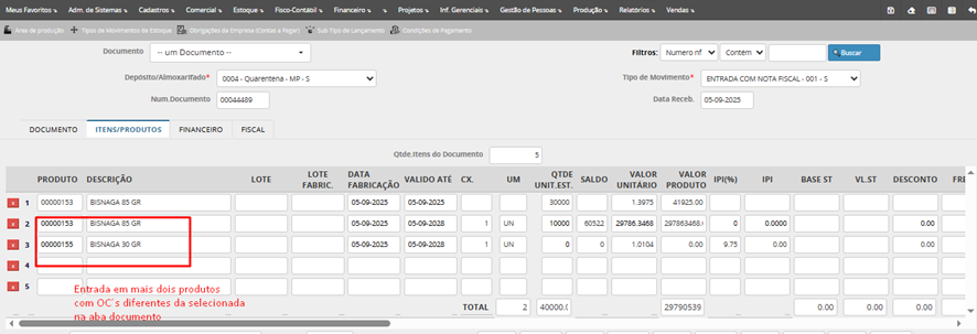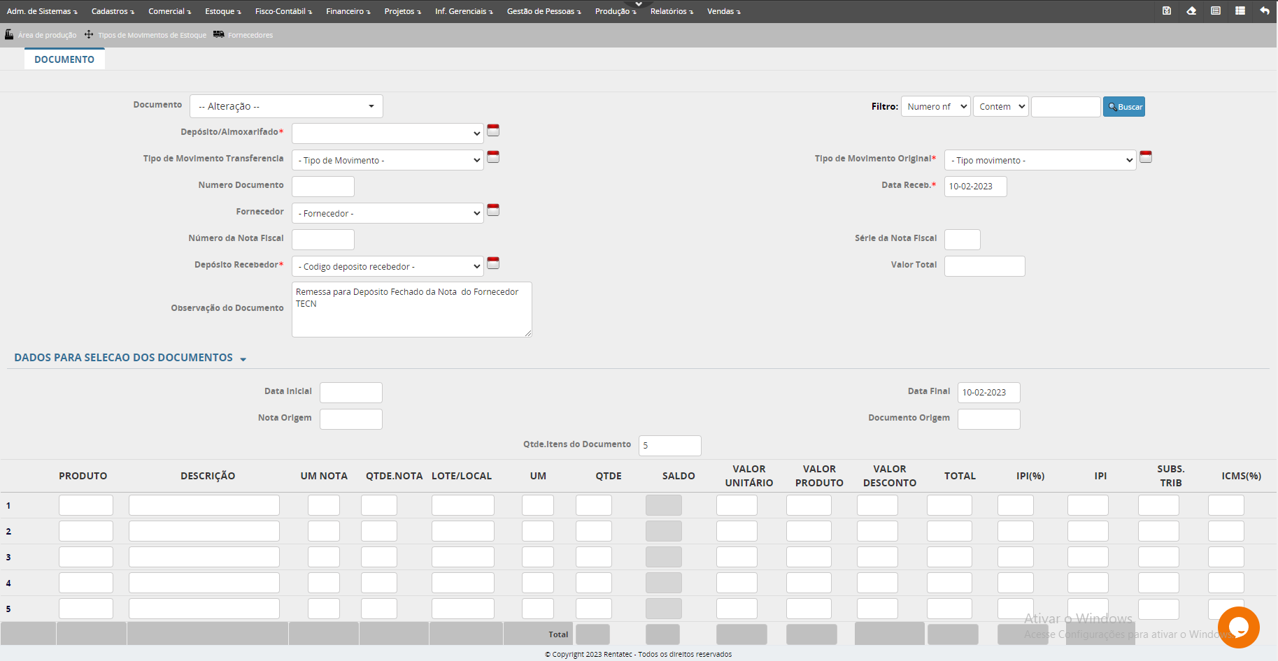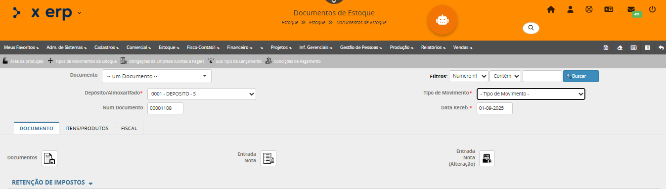 GERAÇÃO DE DOCUMENTO DE ESTOQUE
