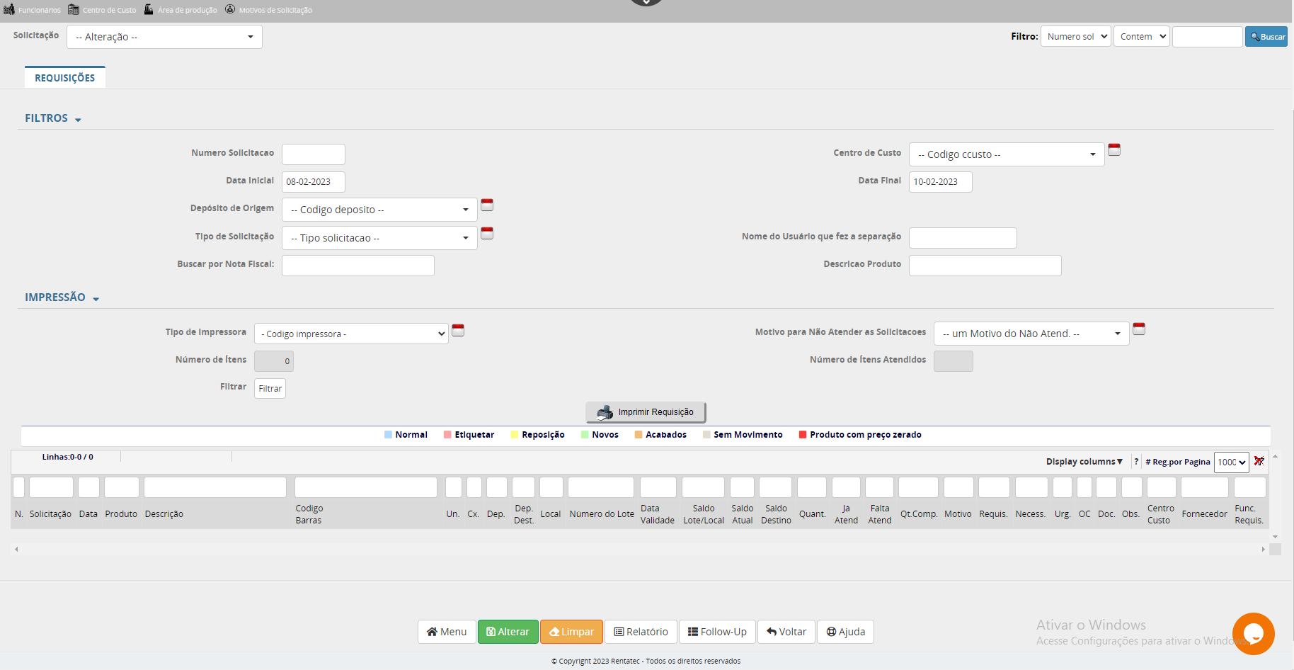 SOLICITAÇÃO DE MATERIAIS NORMAL