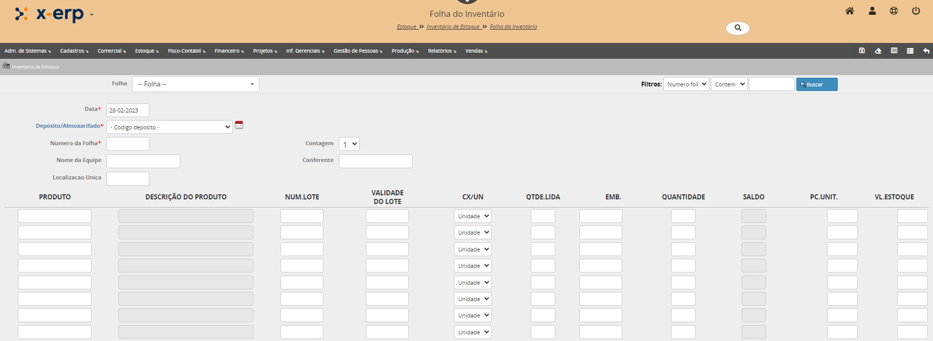 No menu principal, selecione: Estoque > Movimentação de Estoque > Baixa por quebras e avarias.