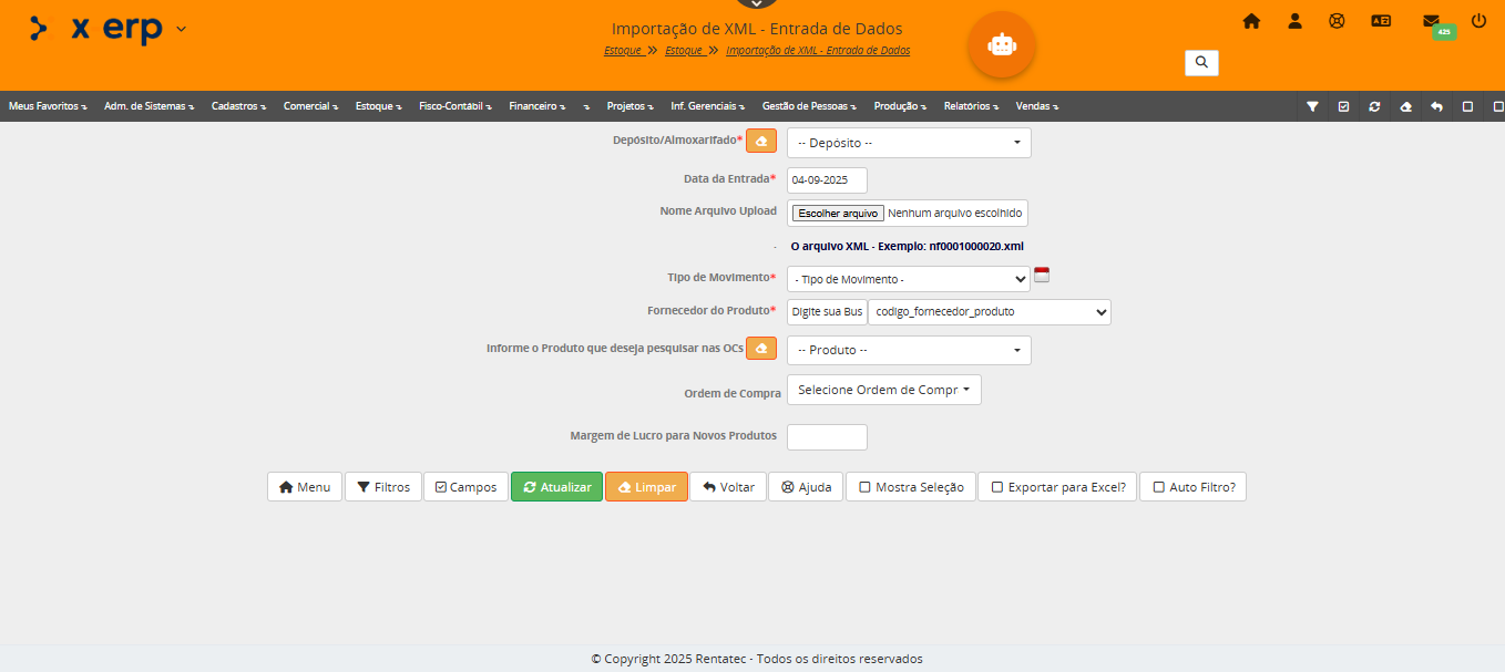 Quando utilizado este recurso de importação de xml, os demais dados da nota fiscal do cliente serão preenchidos automaticamente.