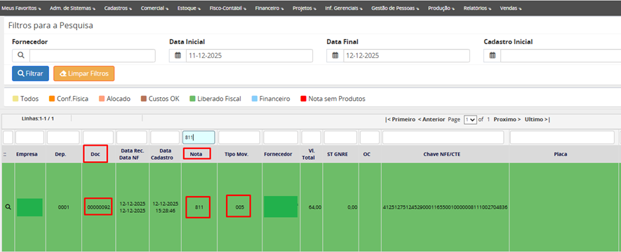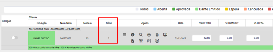 Os blocos de informação acima listados, funcionam como filtros de busca pela nota de venda da mercadoria.