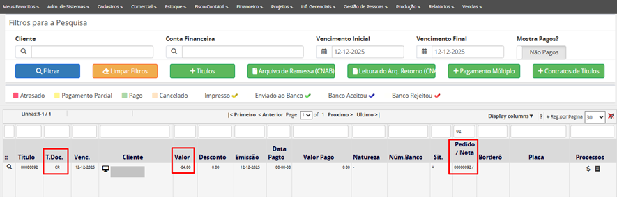 GERAÇÃO DE TÍTULO DE CRÉDITO PARA O CLIENTE