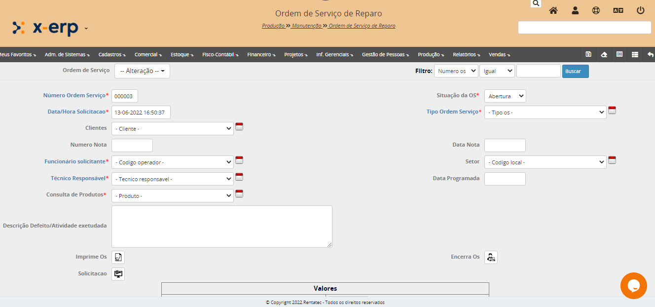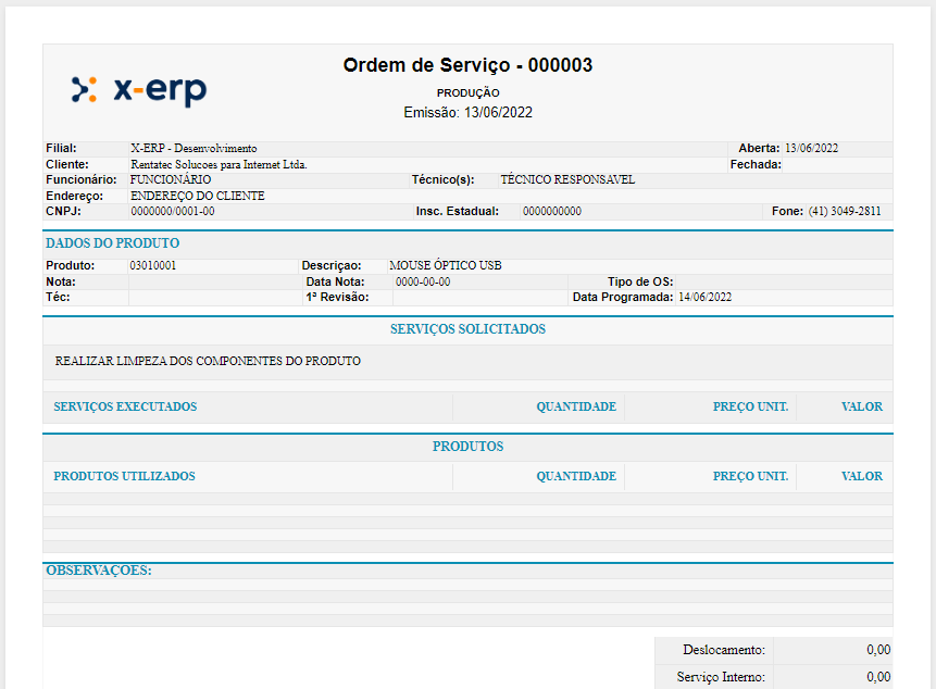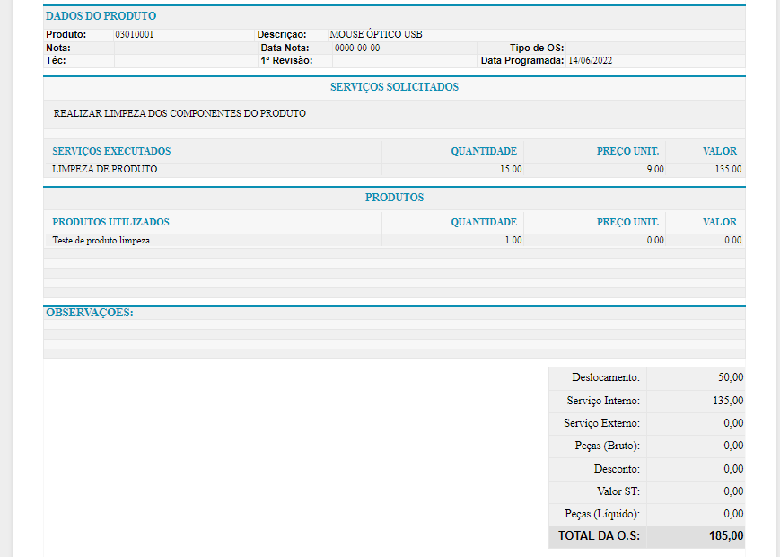 O serviço será cadastrado como um produto, por isso cadastramos esse serviço no próprio programa de cadastro de produto.