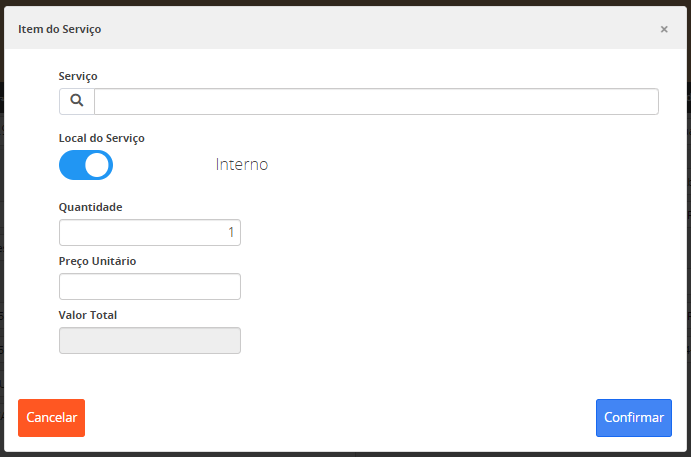 Para que o tipo de serviço externo esteja disponível para seleção, é necessário a configuração deste tipo de serviço pelo usuário.