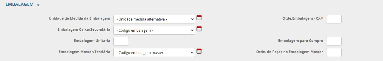 Qtde.Embalagem - CX: Informar/especificar a quantidade de peças que contêm a caixa secundária. Informar a quantidade em numeral. Ex.: 10