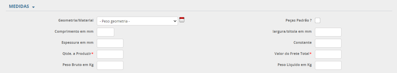 Nota:Os campos Peso bruto e Peso Líquido deverão ser preenchidos caso o produto possua estas características de controle. As informações de peso serão utilizadas para calculo total do peso bruto e liquido que devem ser informados na Nota Fiscal.