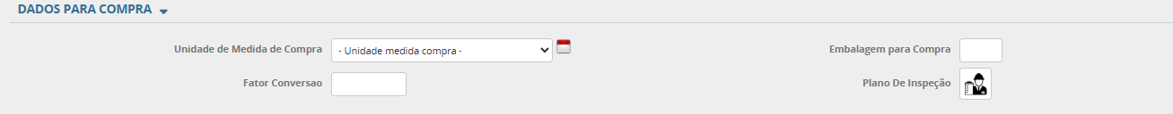 Unidades de Medida de compra: Selecionar a unidade de medida do produto previamente cadastrada. Ex: PC (peça), M (metro), UN (unidade) CX (caixa), etc. Trata-se do mesmo cadastro de unidade de medida utilizado no campo acima (unidade de medida). O que diferencia é que neste campo deve ser informado qual a unidade de medida utilizada na compra deste produto.