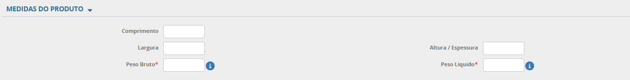 Peso Liquido: Campo obrigatório. Informar o peso liquido do produto em quilograma, ou seja, se for 100 gramas, informar 0.100.