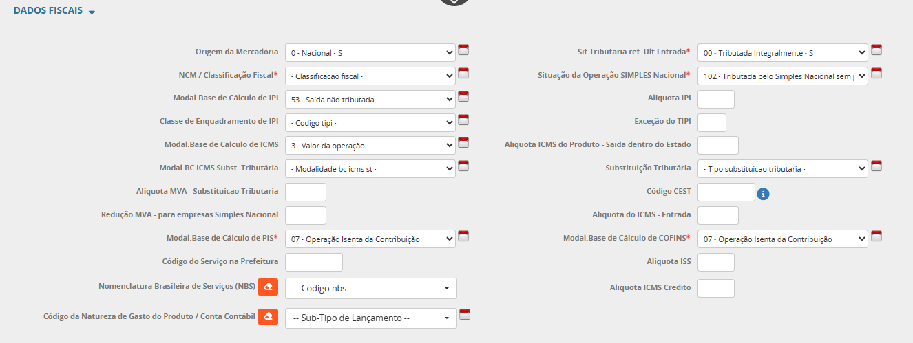 O Cadastro de Produtos tem como pré-requisitos alguns cadastros. São eles, listados abaixo: