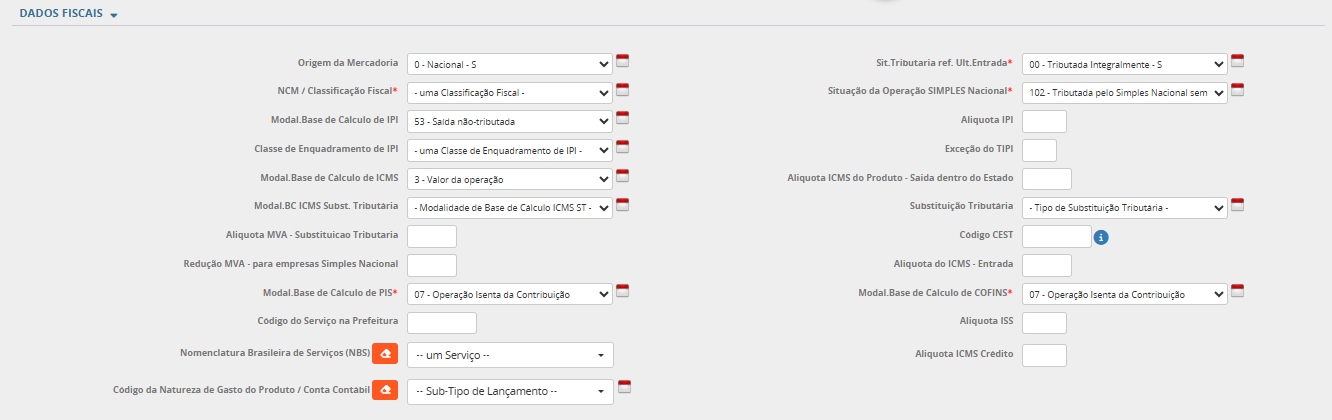 - NBM/Classificação Fiscal;