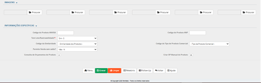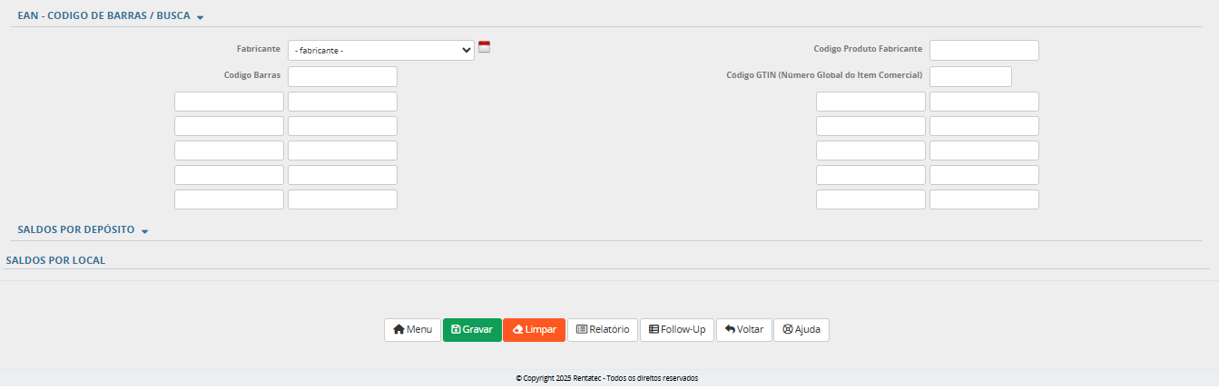 Depois de gravado a única informação que não é passível de alteração é o código do produto. Portanto, verificar com cuidado antes de realizar um novo cadastro.