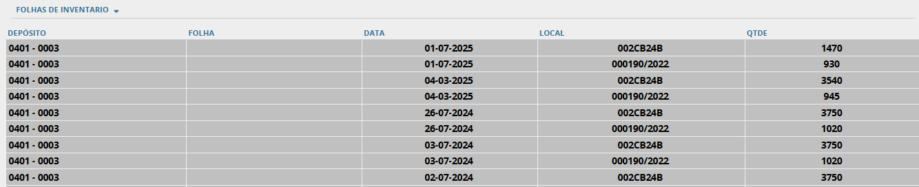 A quantidade de informada será contabilizada para o depósito informado nos parâmetros de configuração Planejamento e Controle de Produção, parâmetro "deposito_producao".