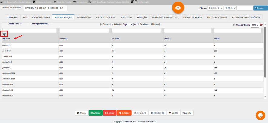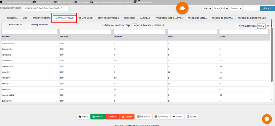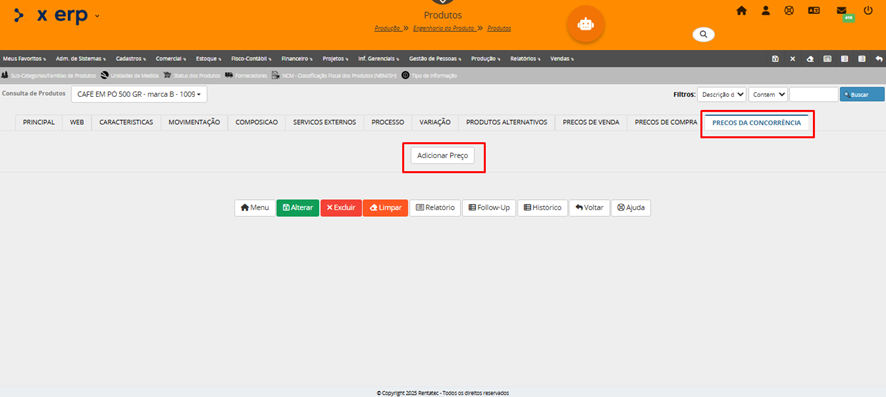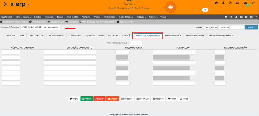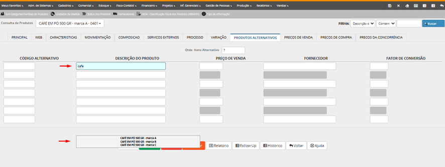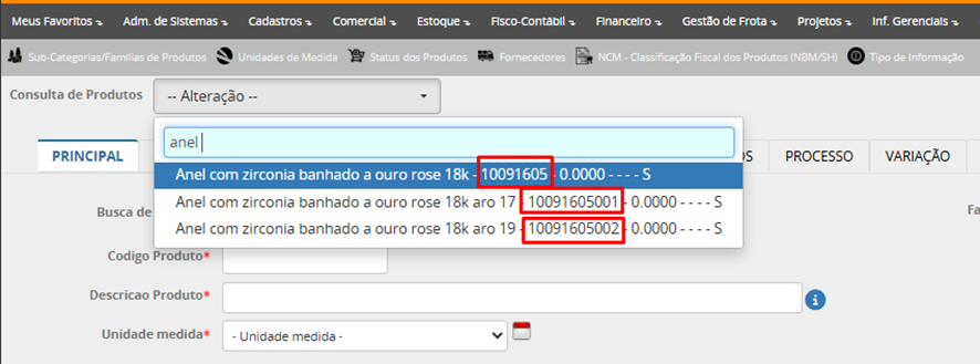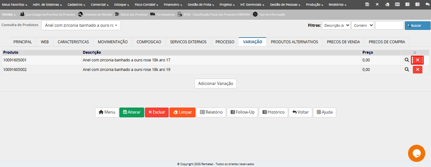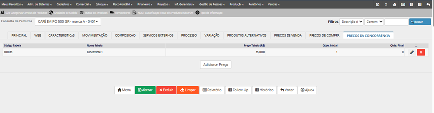Lembrete: depois de gravar/salvar o produto cadastrado, o campo código do produto não pode ser mais alterado por ser campo chave do cadastro.