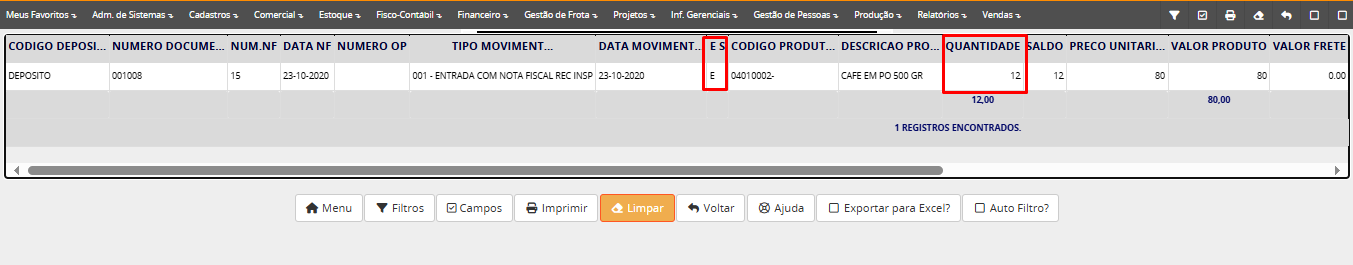Após gravar o sistema irá criar a nota conforme o tipo de movimento (neste caso, venda)