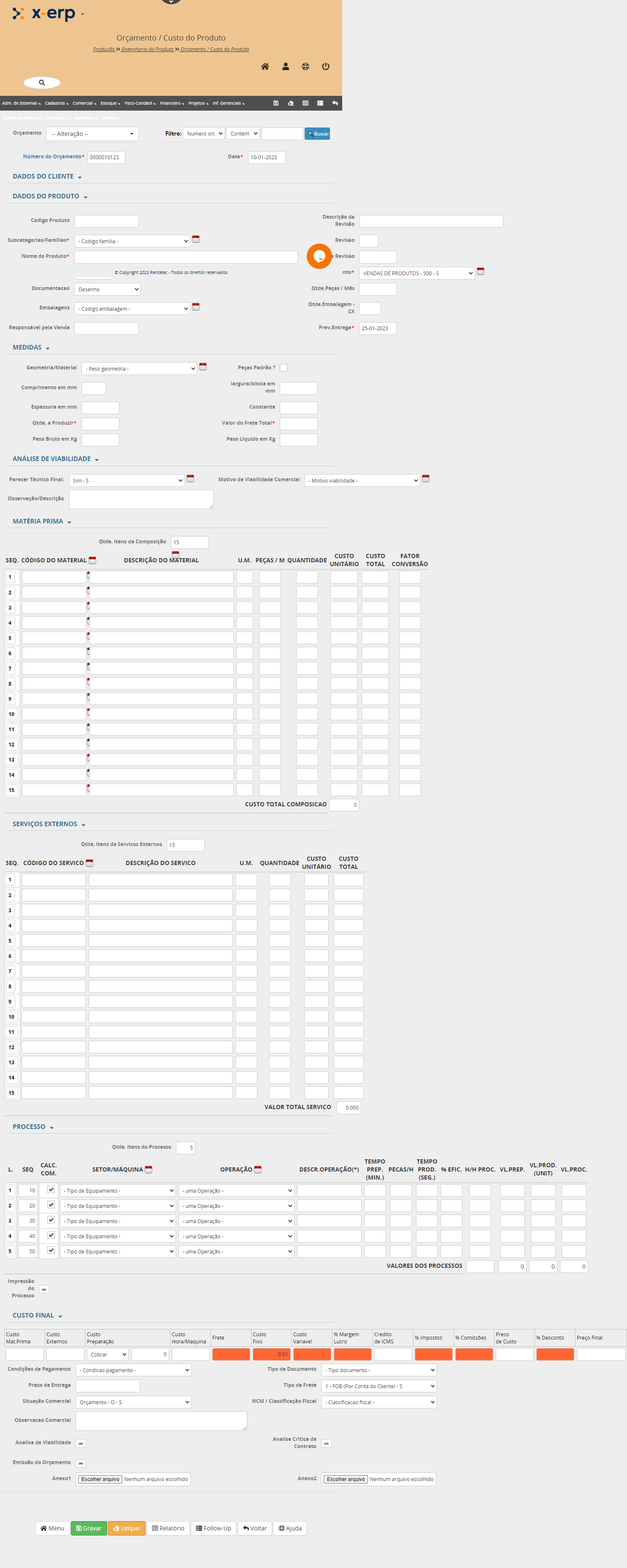 O objetivo deste programa é realizar a montagem de um relatório de orçamento de custo de produtos.